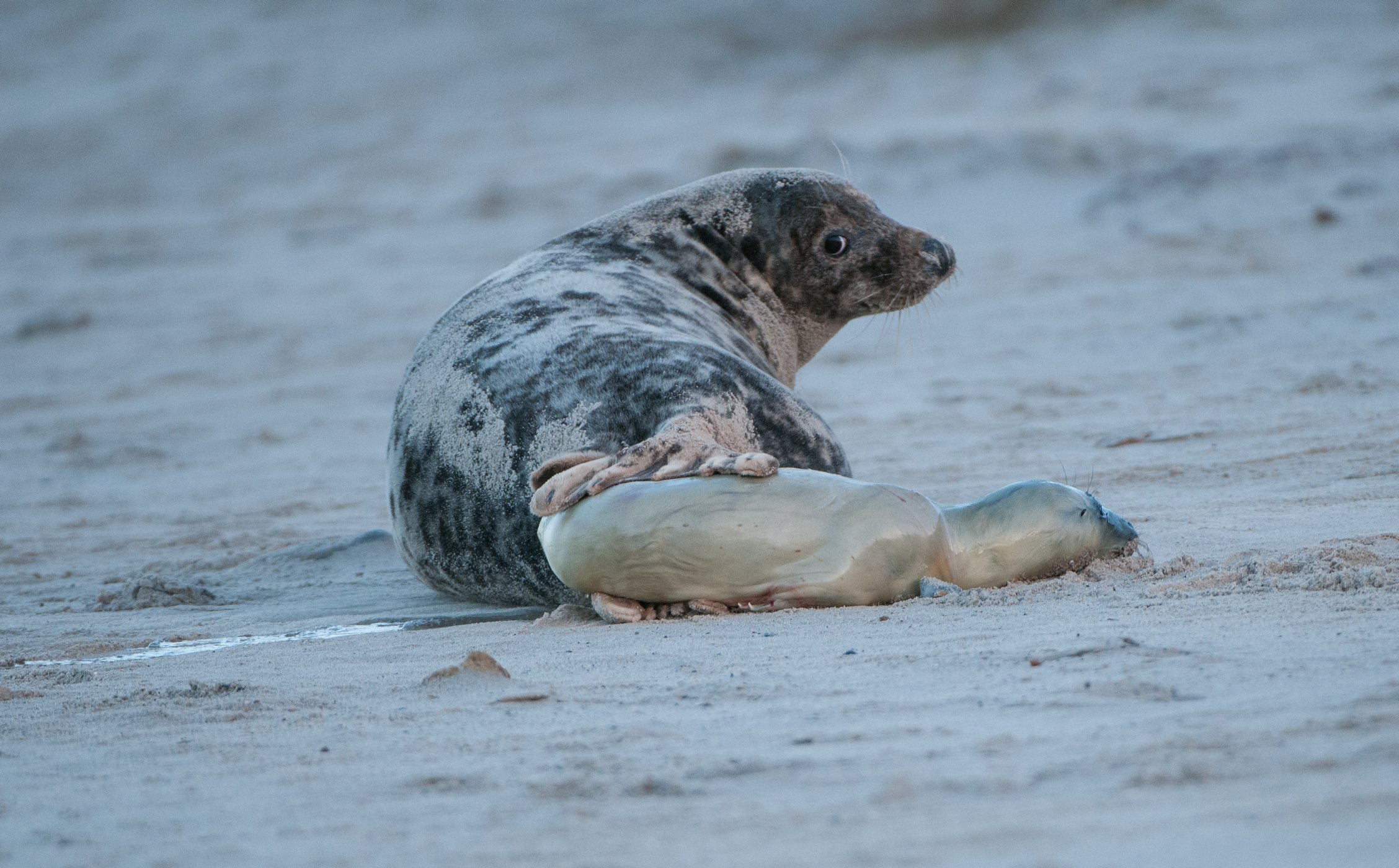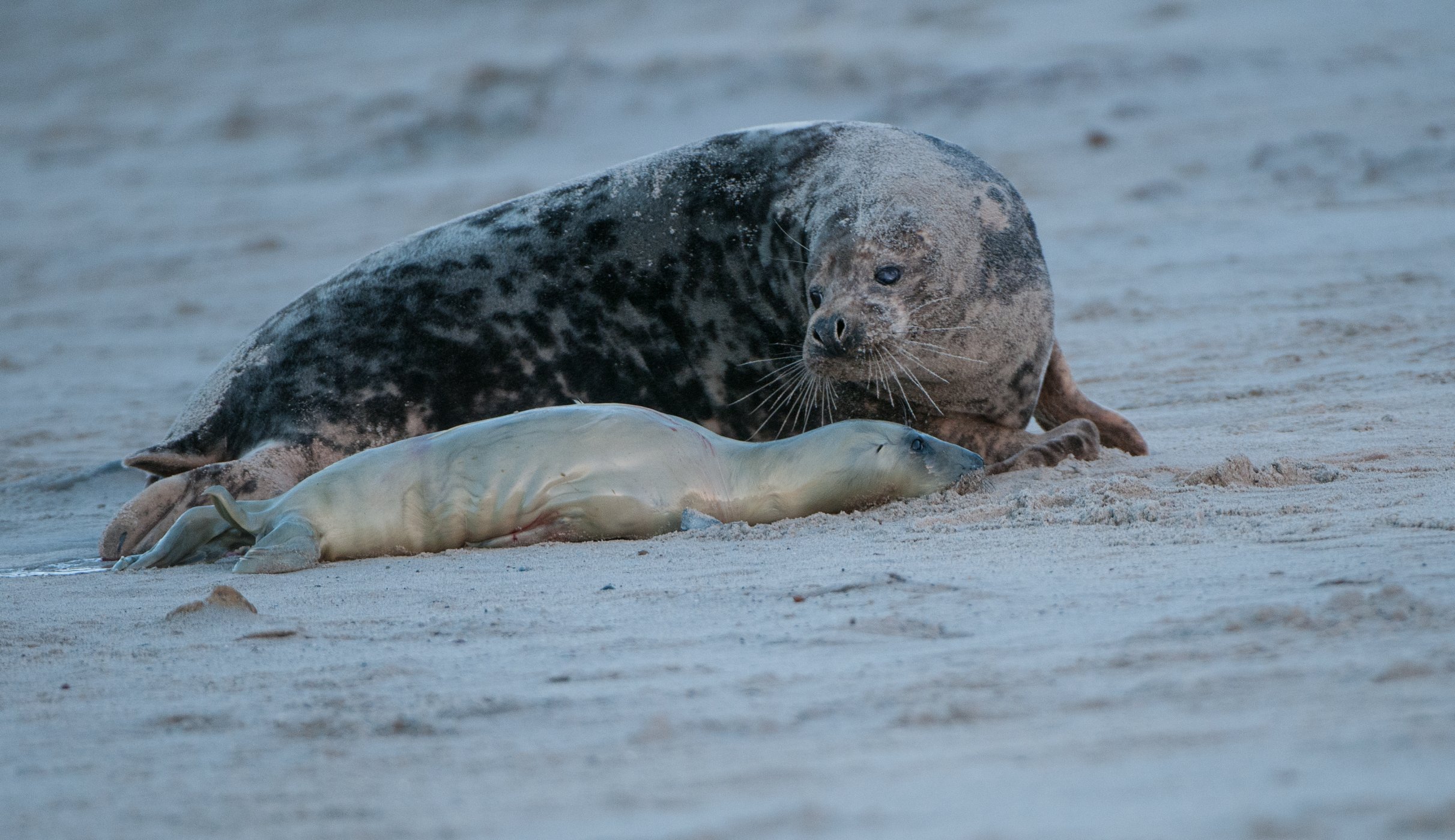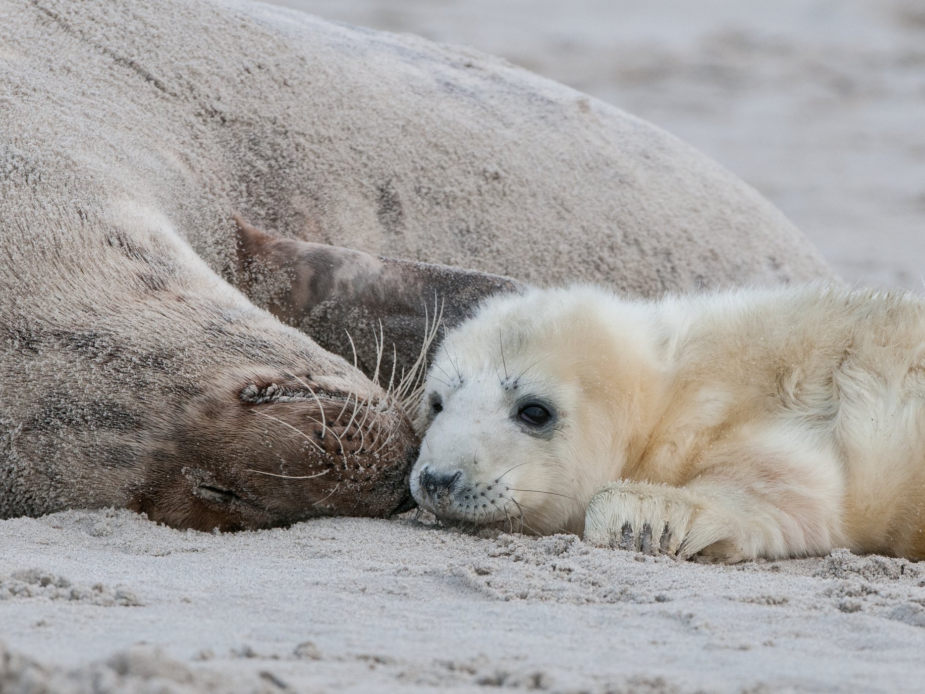 Tulení matky něžně dbají o blaho svých potomků. Zároveň jsou však připravené kdykoli zasáhnout proti nevítanému návštěvníkovi.