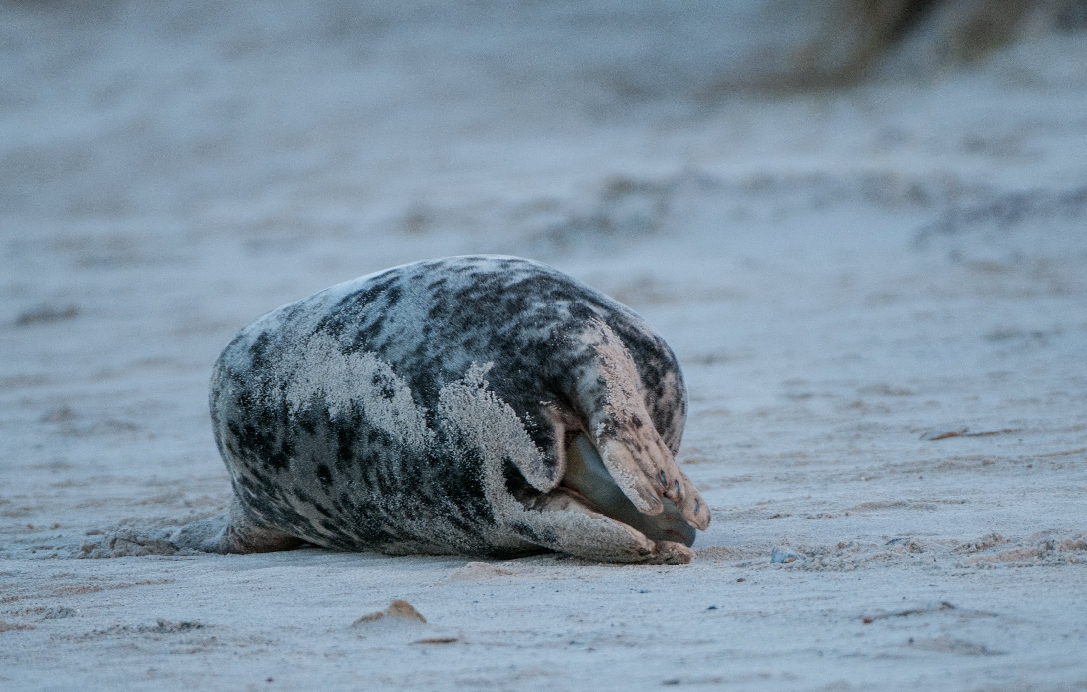 Pláž ostrova Düne plná tuleňů a fotografů.