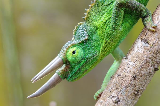 Chameleon Jacksonův: Třírohý bojovník z vysokohorských lesů východní Afriky