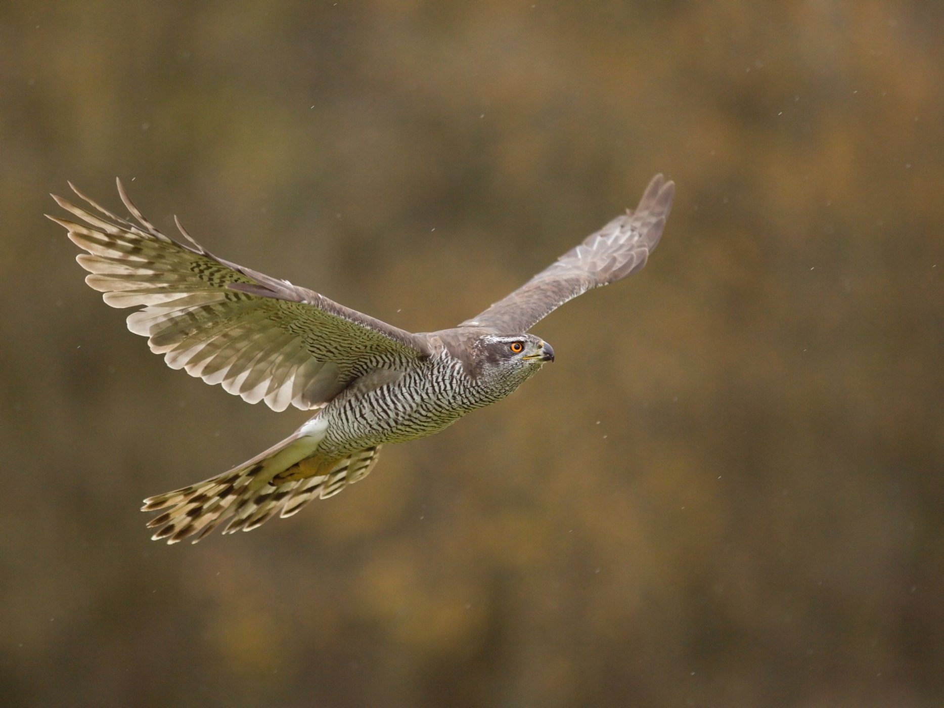 Divoký vzhled jestřába dokresluje ohnivě zbarvené oko