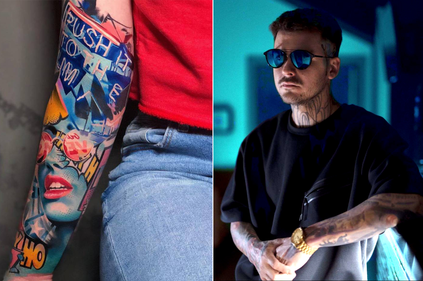 Igor Mitrenga ve svých tetováních spojuje graffiti třeba s realistickými portréty.