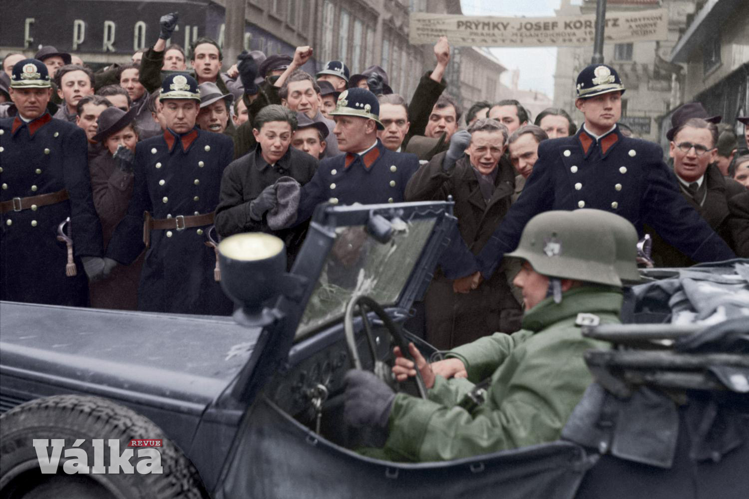 Legendární kolorovaný snímek zachycuje náladu, jaká panovala 15. března v Praze.