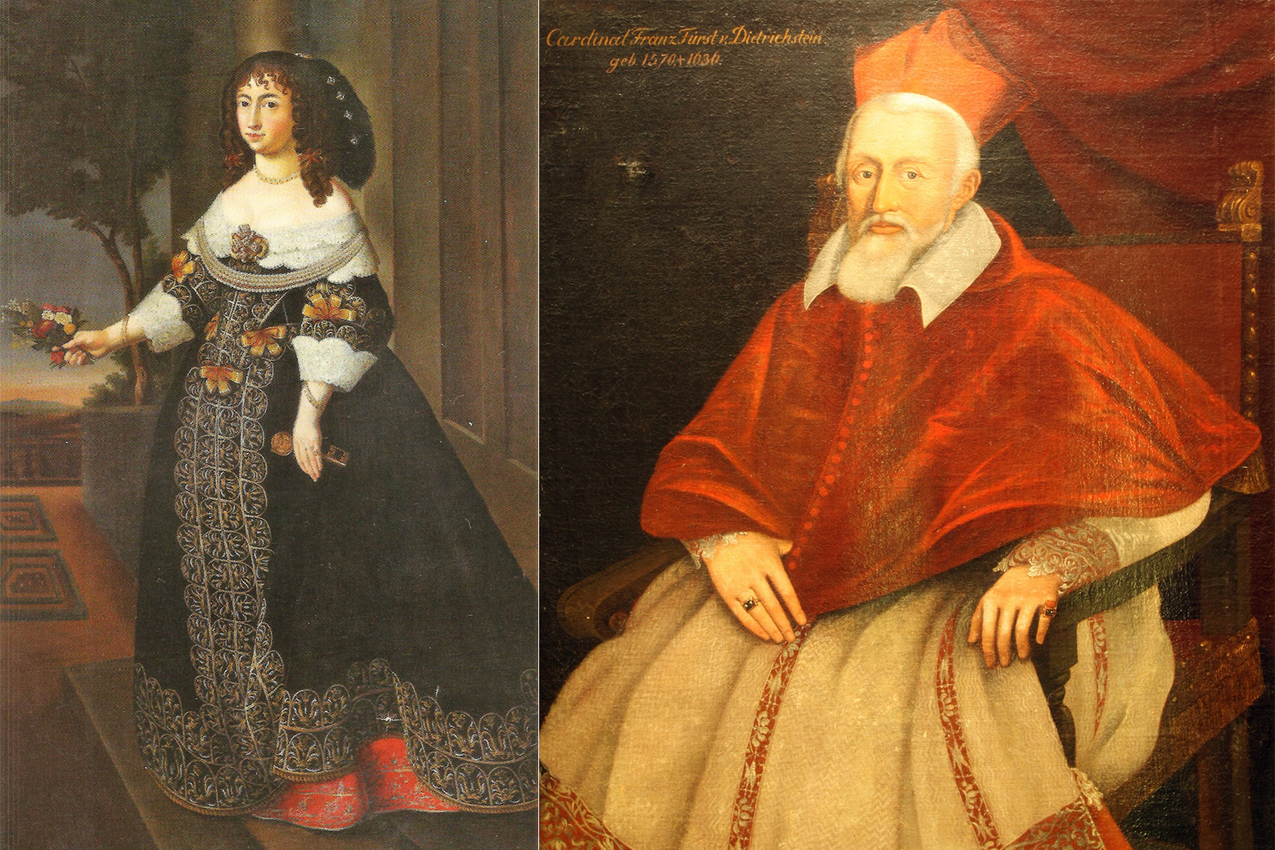 Olomoucký biskup a kardinál František kníže Ditrichštejn a jeho dcera hraběnka Johanna Priska de Magnis.