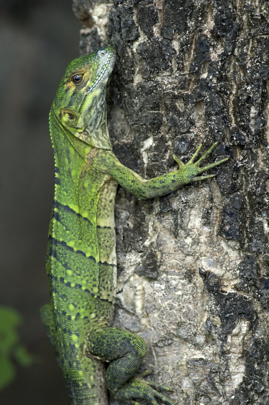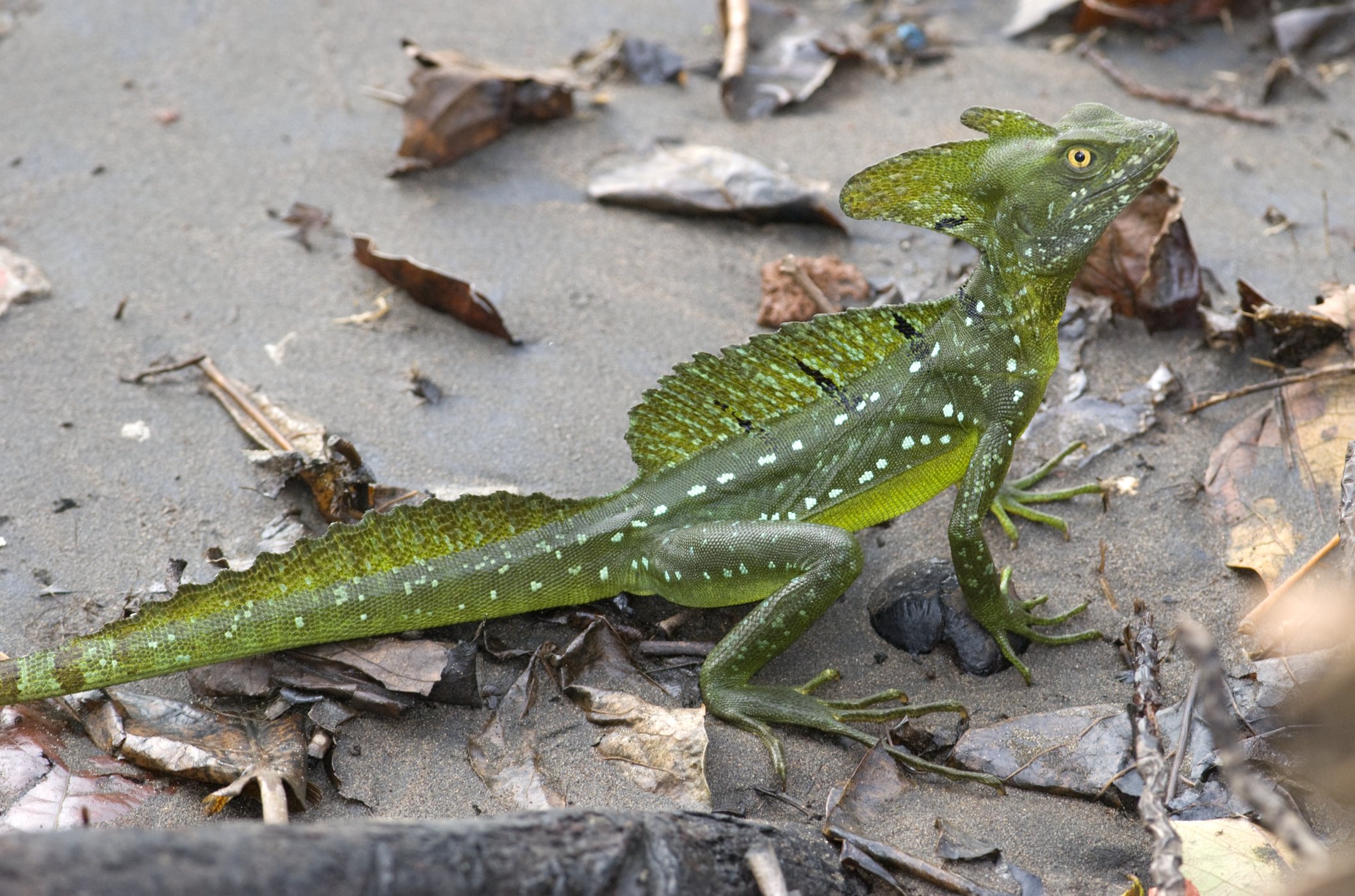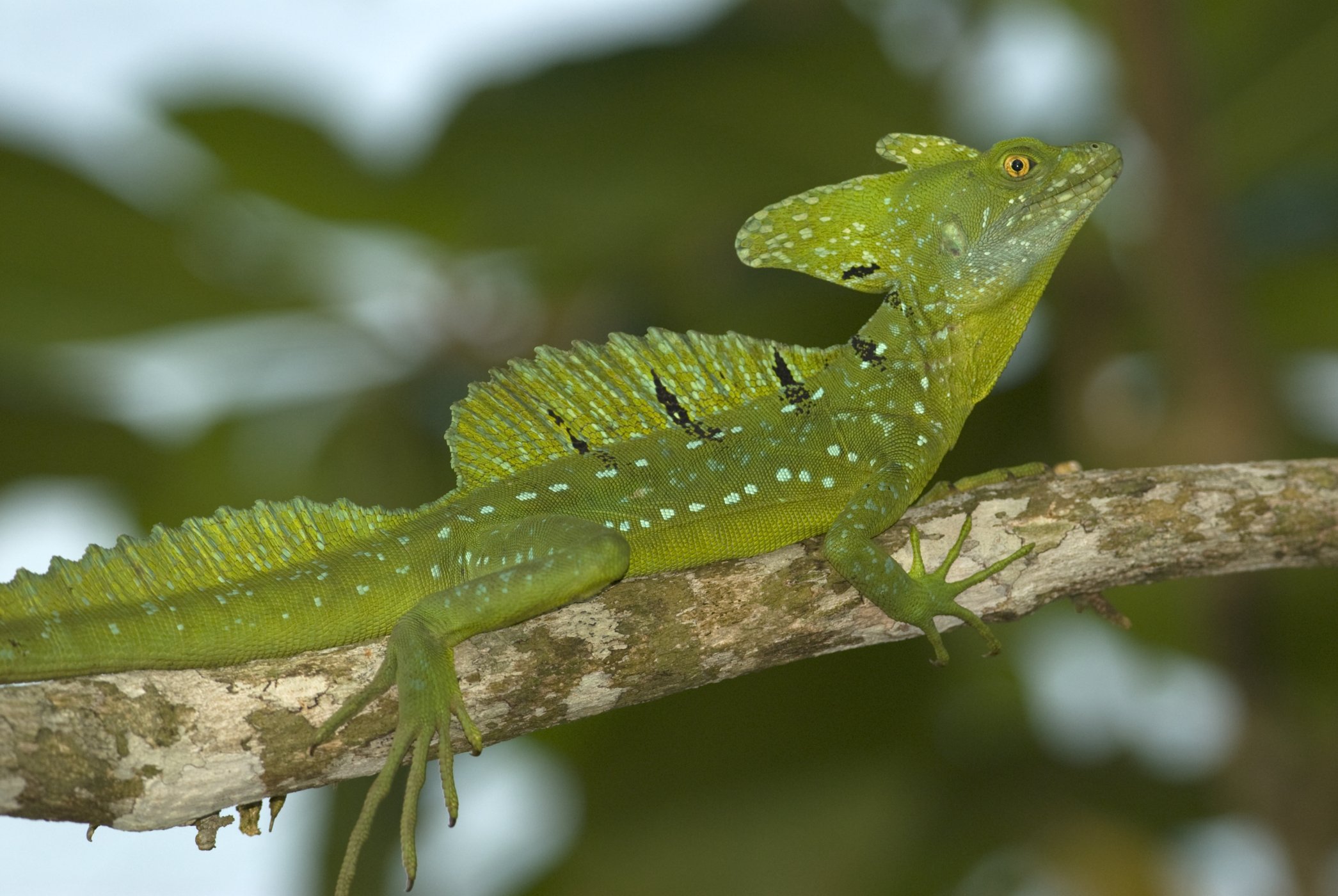 Bazilišek zelený (Basiliscus plumifrons) dorůstá délky až 80 cm, z čehož však 2/3 připadají na ocas. Všichni baziliškové jsou stromoví ještěří obývající spodní patro lesa v blízkosti vody. (zdroj: Jan Ševčík)