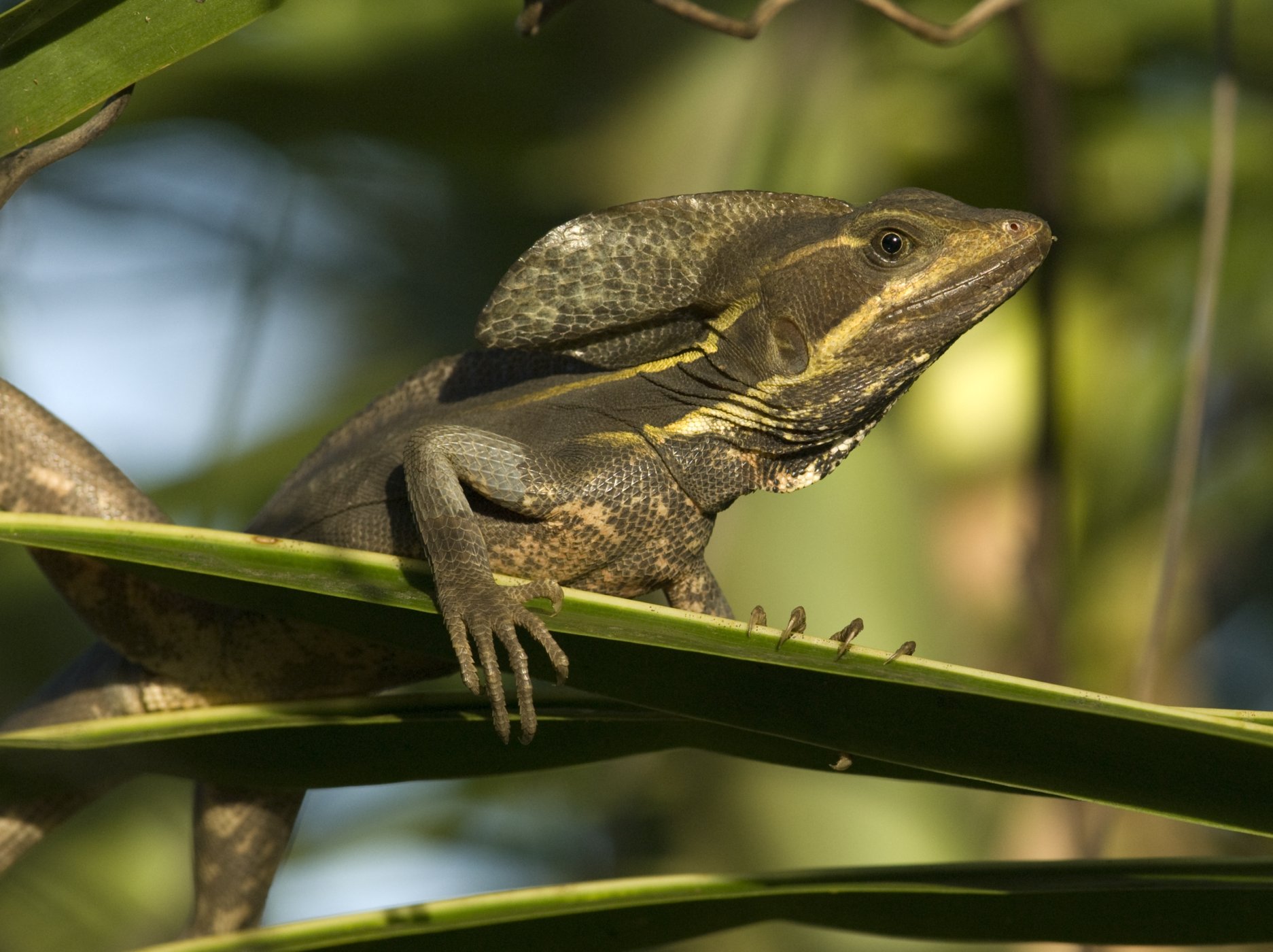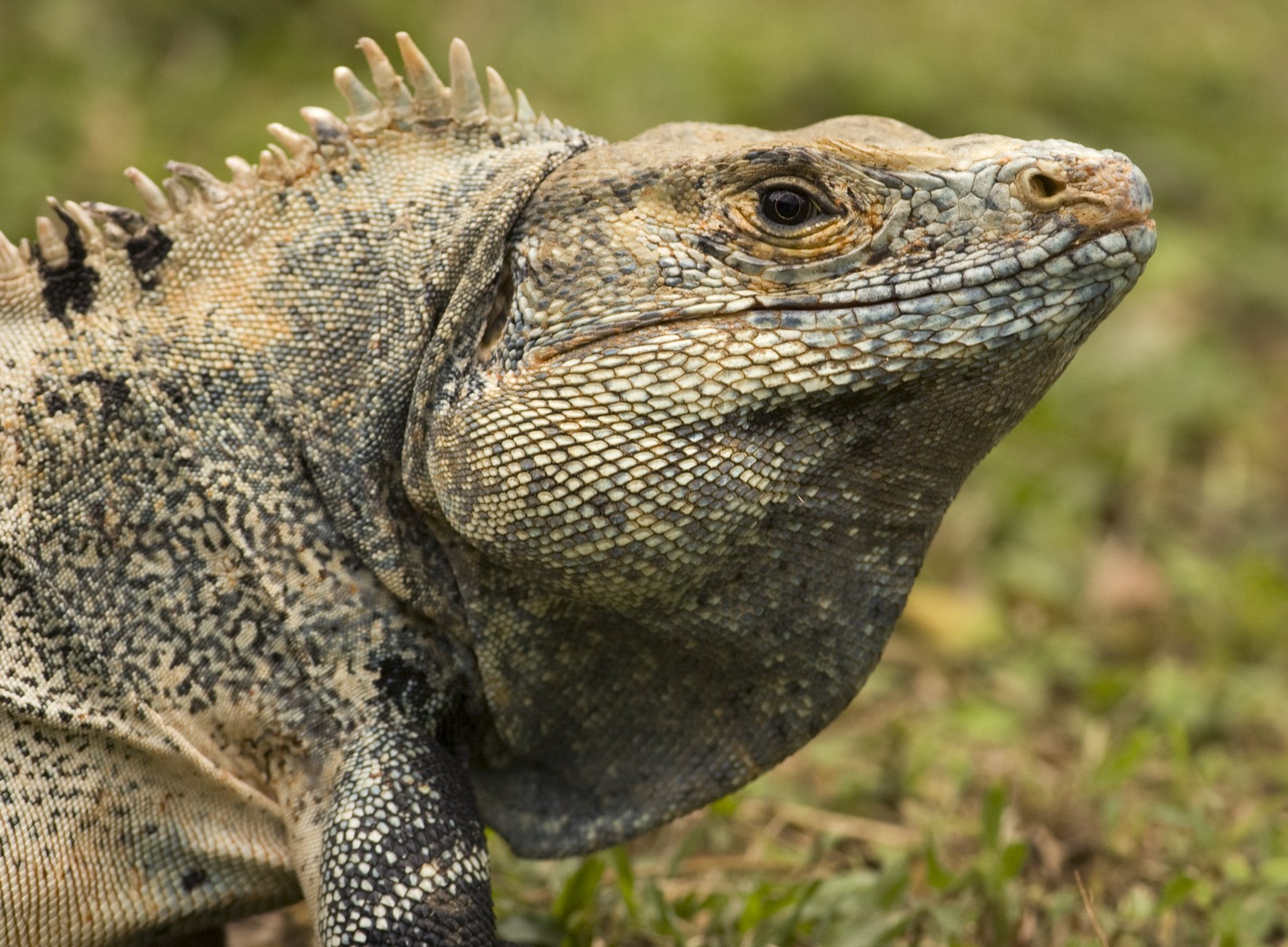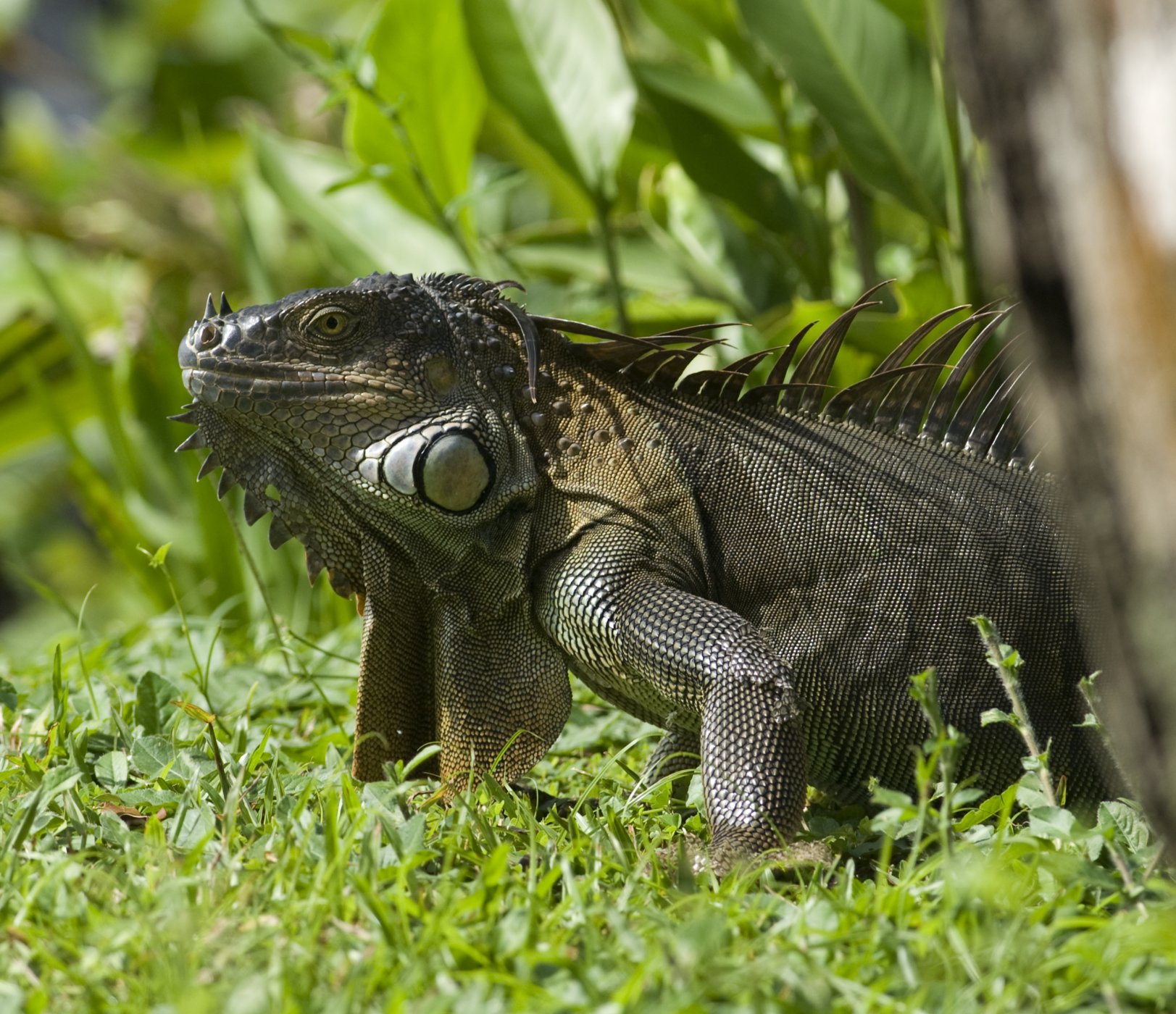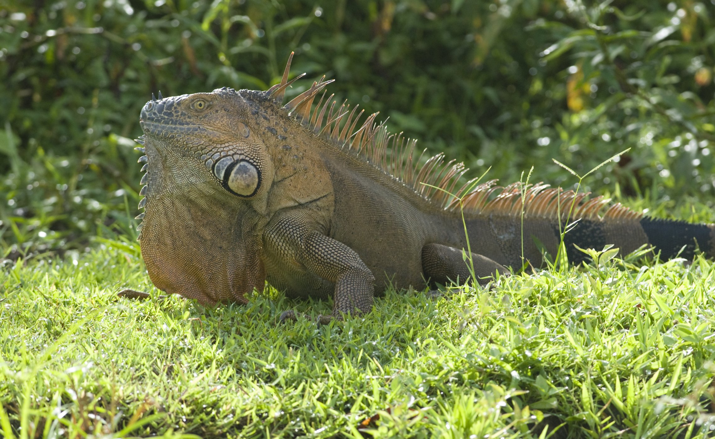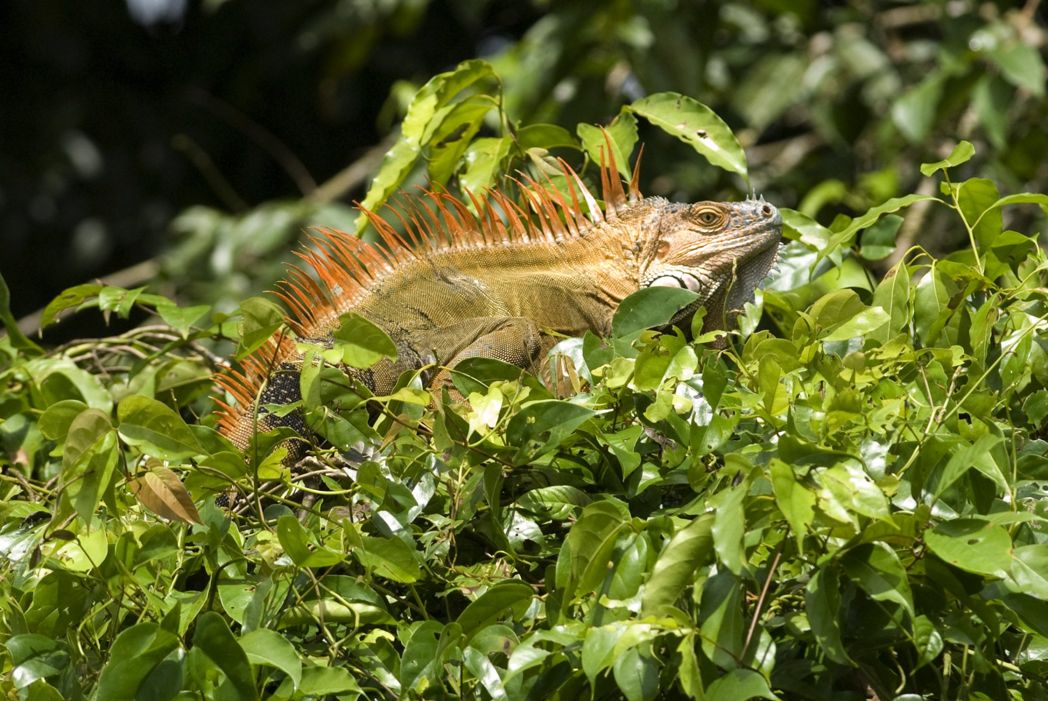 Leguán zelený (Iguana iguana) dorůstá délky až dvou metrů a hmotnosti čtyř kilogramů. Obratně šplhá v korunách stromů i dobře plave, při nebezpečí se střemhlav vrhá do vody a ukrývá se pod hladinou. (zdroj: Jan Ševčík)