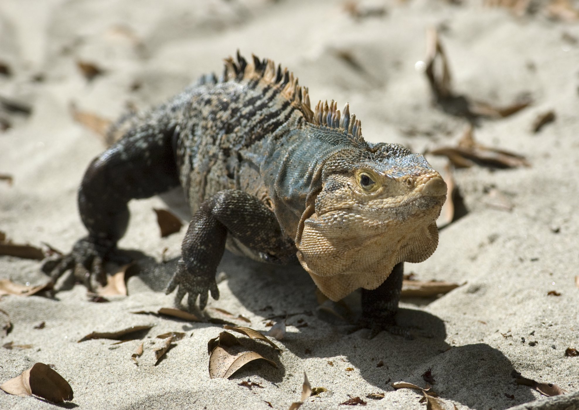 Leguán černý (Ctenosaura similis) dorůstá délky asi 1,2 metrů při hmotnosti do dvou kilogramů. Obývá sušší oblasti s rozptýlenými stromy, rád osidluje zříceniny starých staveb nebo pobřežní skály.(zdroj: Jan Ševčík)