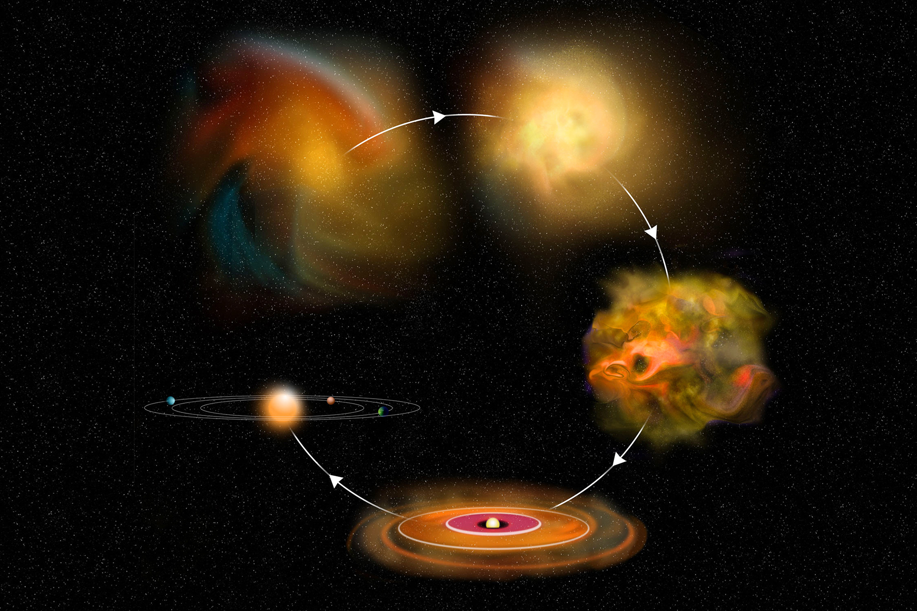 Slunce se zrodilo po gravitačním kolapsu molekulárního oblaku. Kolem něj se pak utvořil protoplanetární disk, v němž nakonec vznikly planety. Přispět mohla také exploze supernovy.