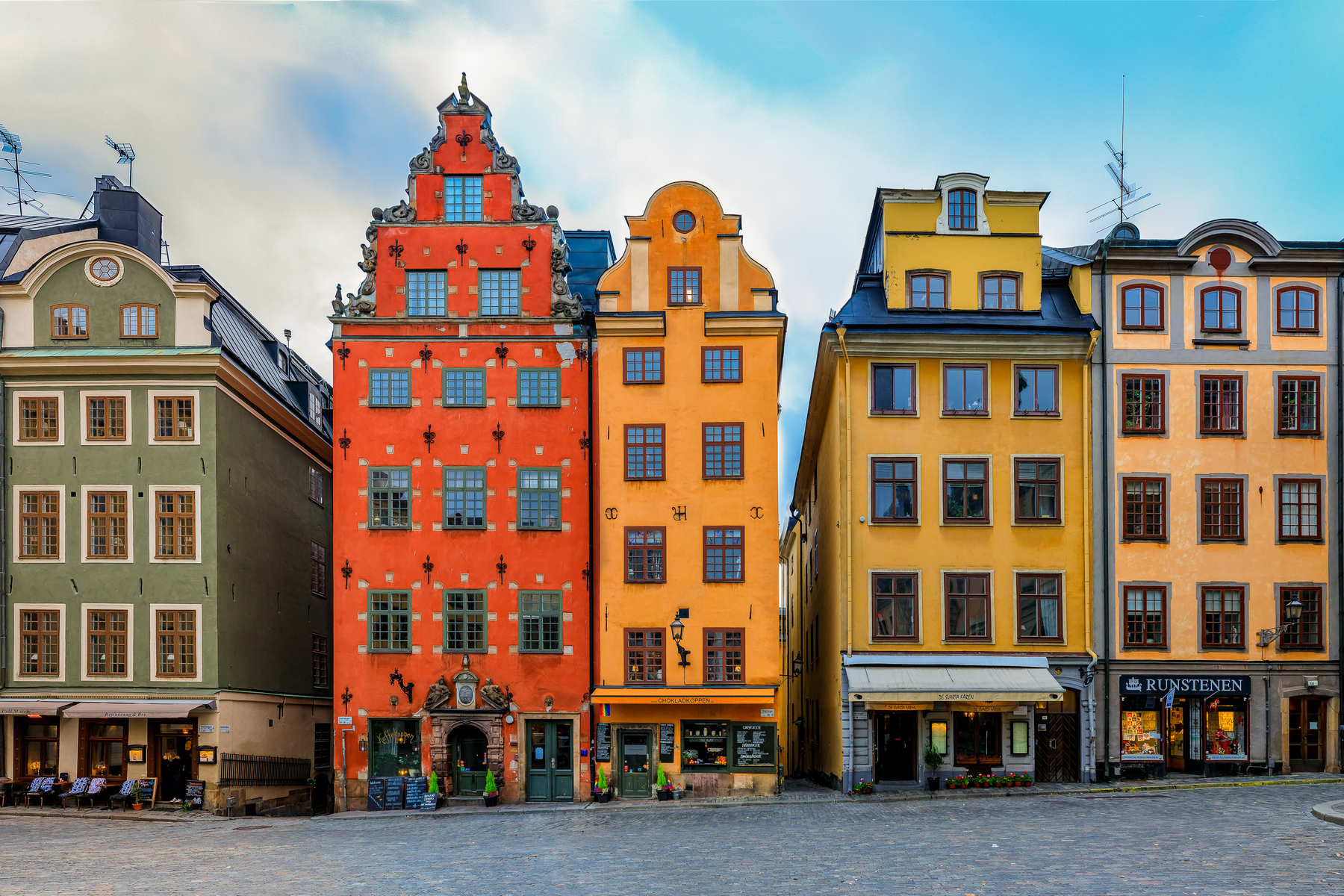 Historické centrum s fasádami vyvedenými v barevných odstínech představuje čtvrť Gamla stan.