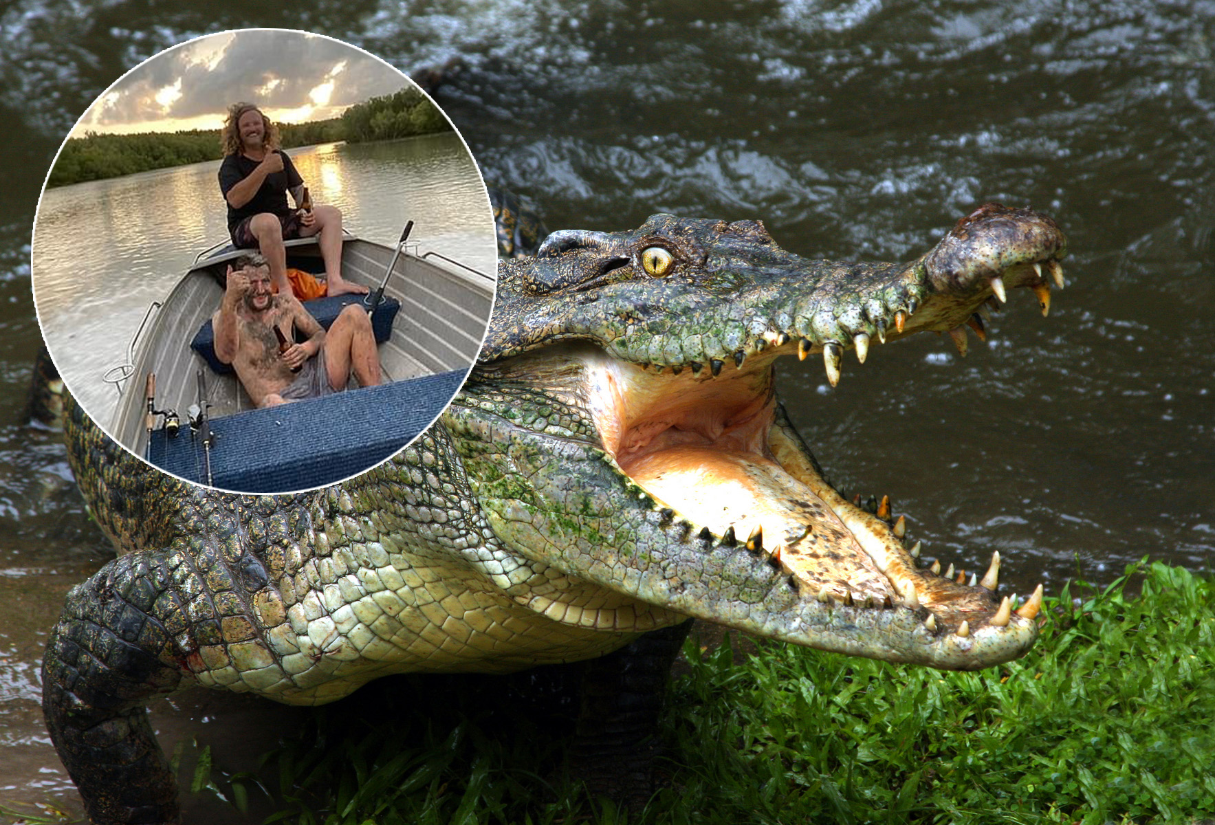 Zachráněný uprchlík v péči rybářů.