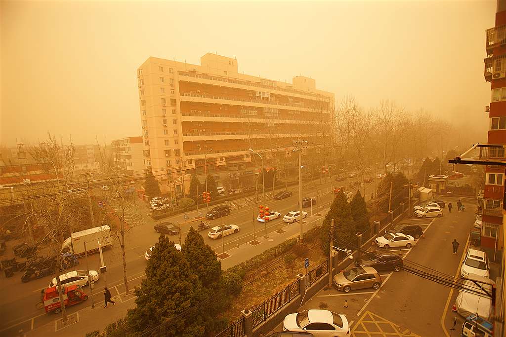 Celou východní Asii sužuje vzduch znečištěný ohromným množstvím částeček z mongolských pustin. Takhle vypadal čínský Peking.