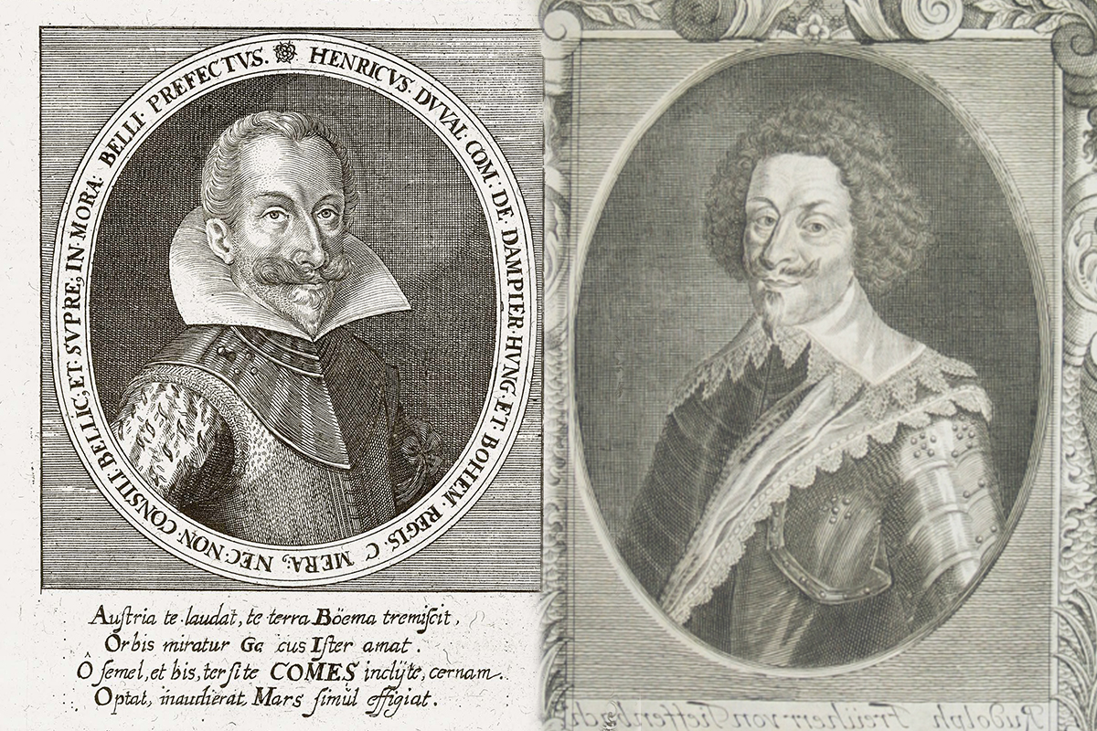 Bitva u Dolních Věstonic proti sobě postavila silné soupeře – důstojníka Jindřicha Duvala Dampierra (vlevo) na straně císařského vojska a Fridricha z Tiefenbachu (vpravo) spolu s Ladislavem Velem ze Žerotína v čele stavovských oddílů.