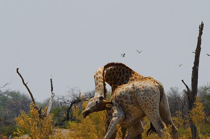 Souboj žirafích samců: Rivalita mezi něžnými obry