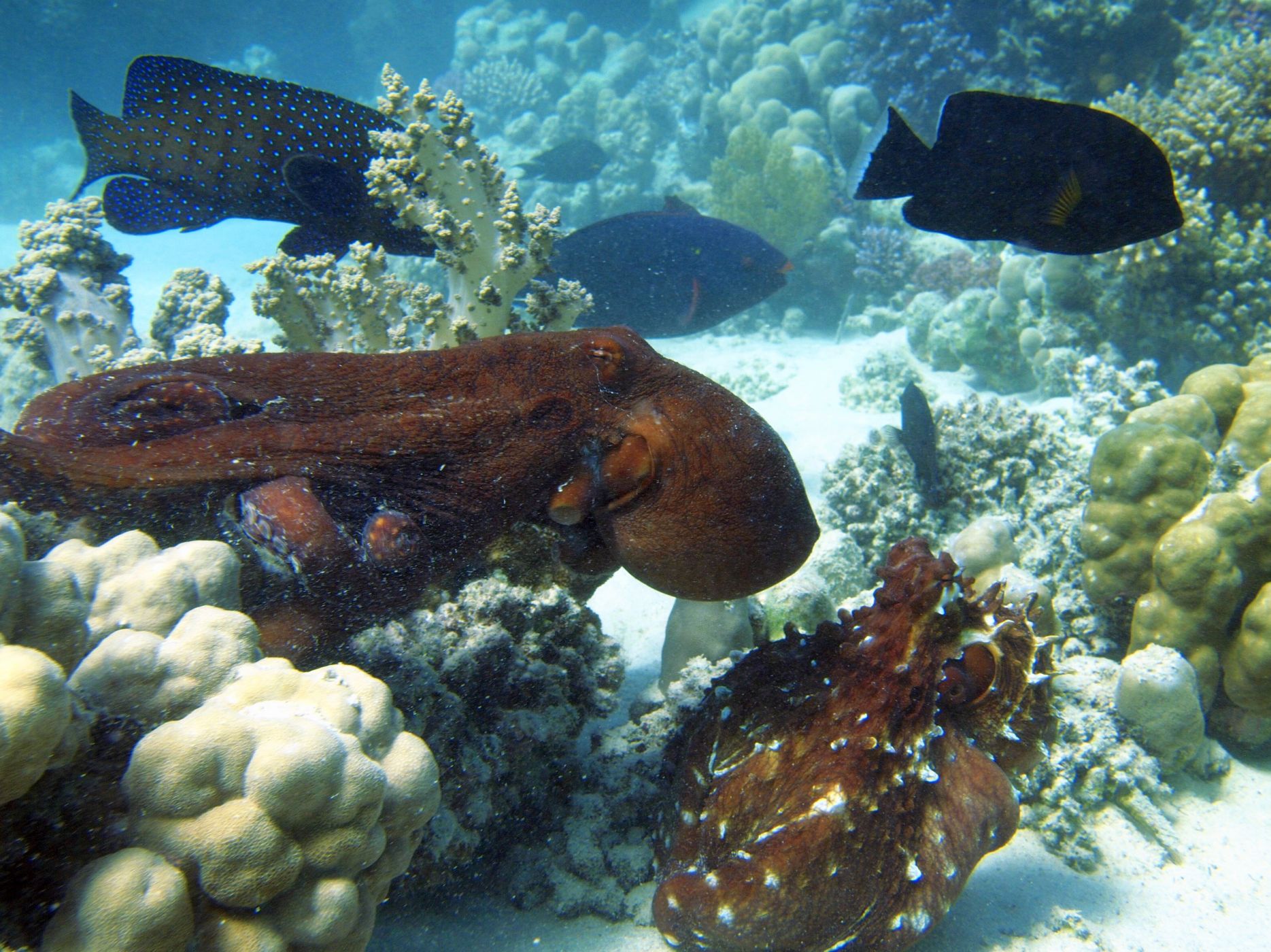 Chobotnice na lokalitě Blue Hole v Rudém moři. (foto: Tomáš Sládek)