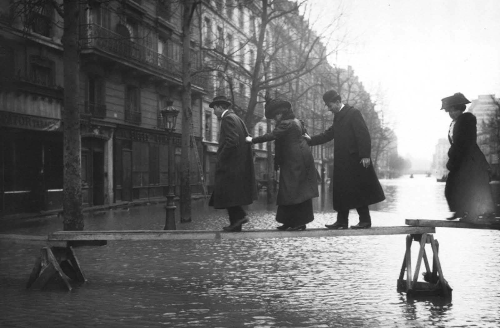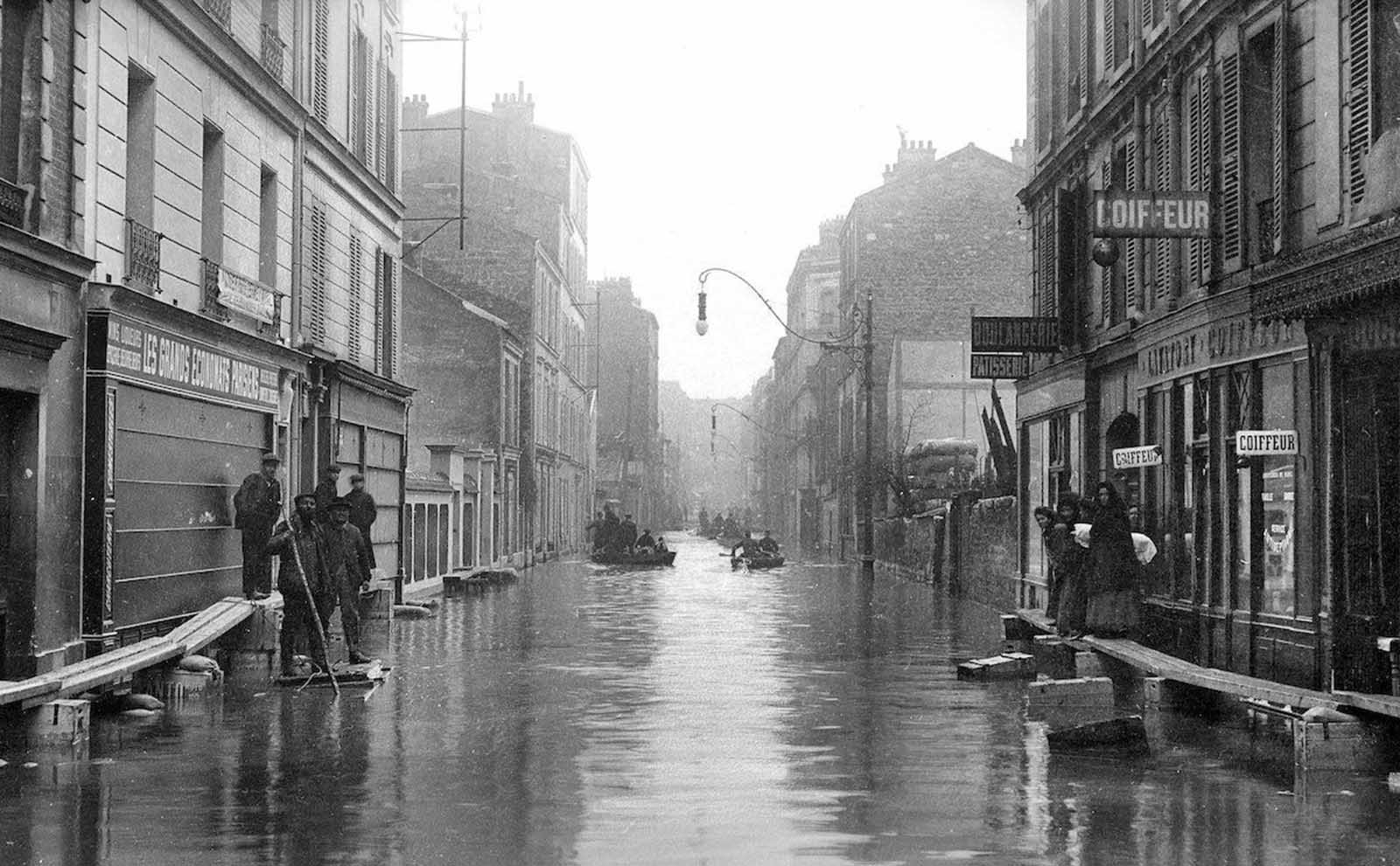 • 21. ledna 1910 hladina Seiny dramaticky stoupla a to, co se zpočátku Pařížanům jevilo jako zajímavá podívaná, přerostlo v paniku. Voda ovládla ulice.