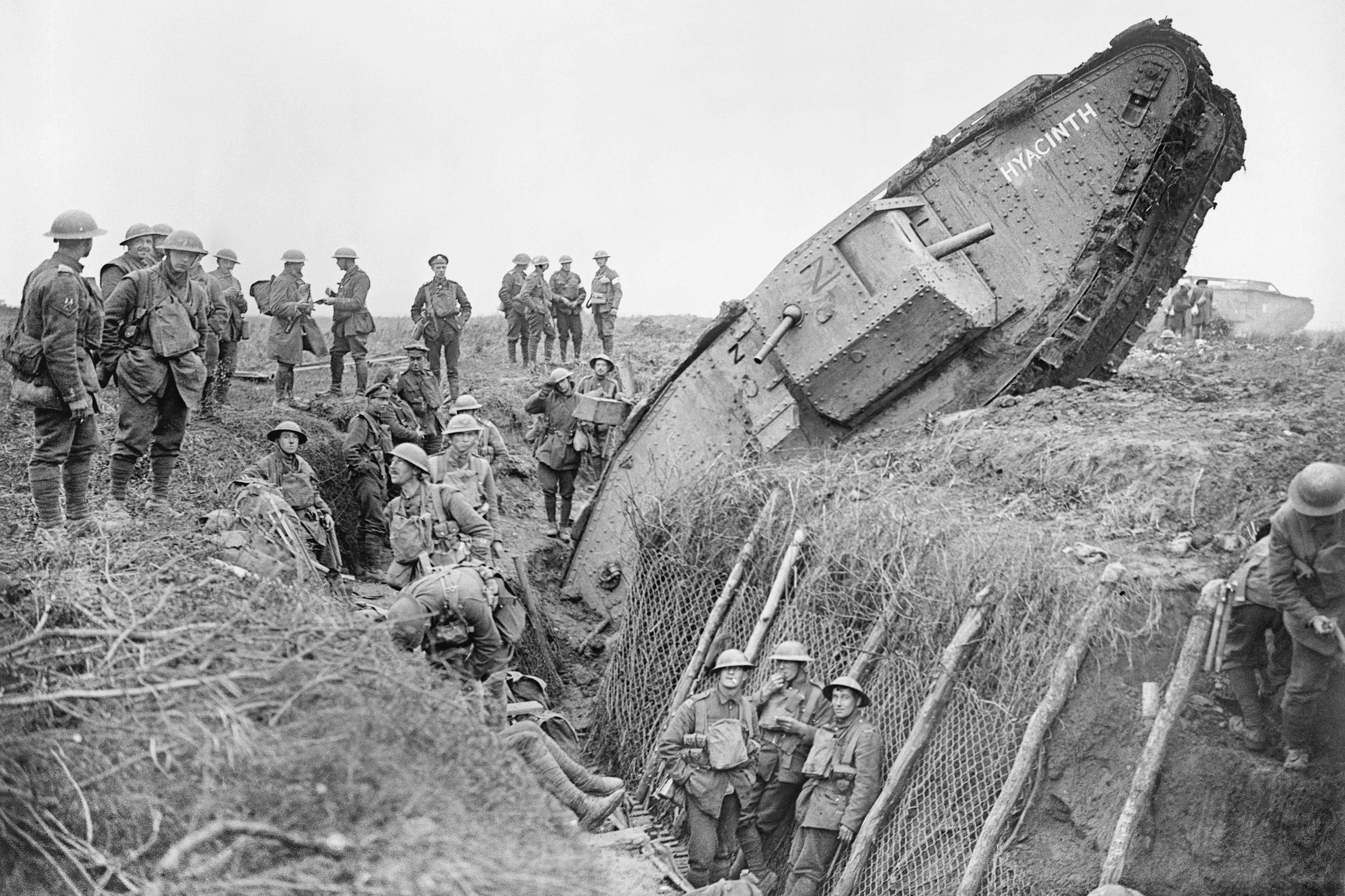 Téměř legendární snímek zachycuje jeden z britských obrněnců u Cambrai, 1917