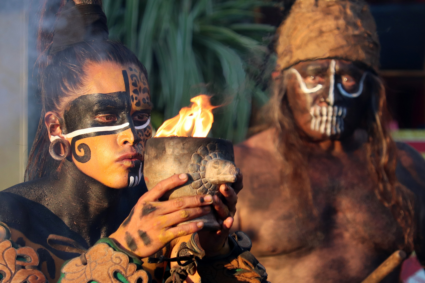 Obětní rituál v podání reenactorů z mexické historické skupiny Xipetotek.