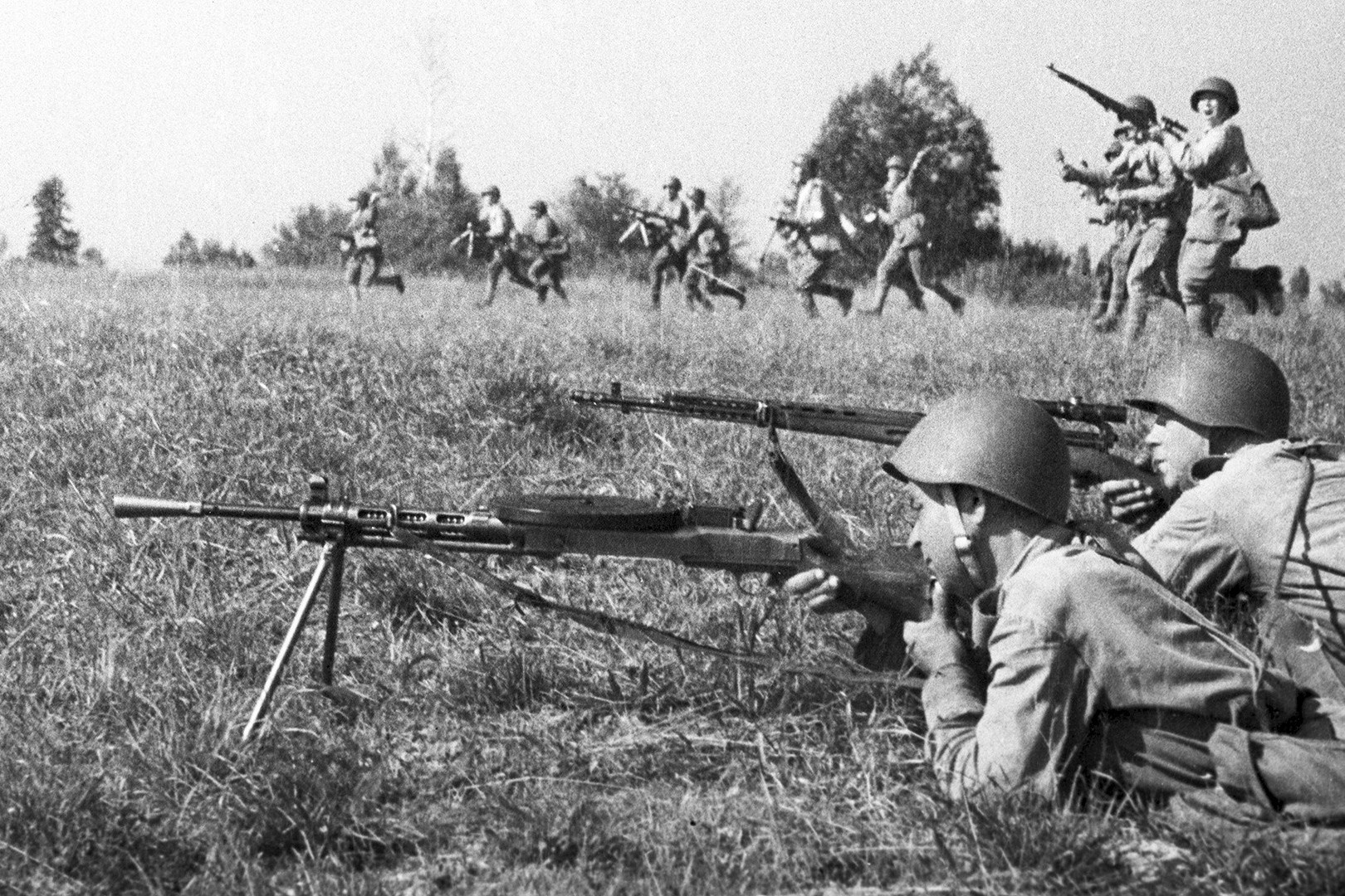 Sovětská pěchota v útoku. Operace Bagration přinesla Rudé armádě obrovské územní zisky.