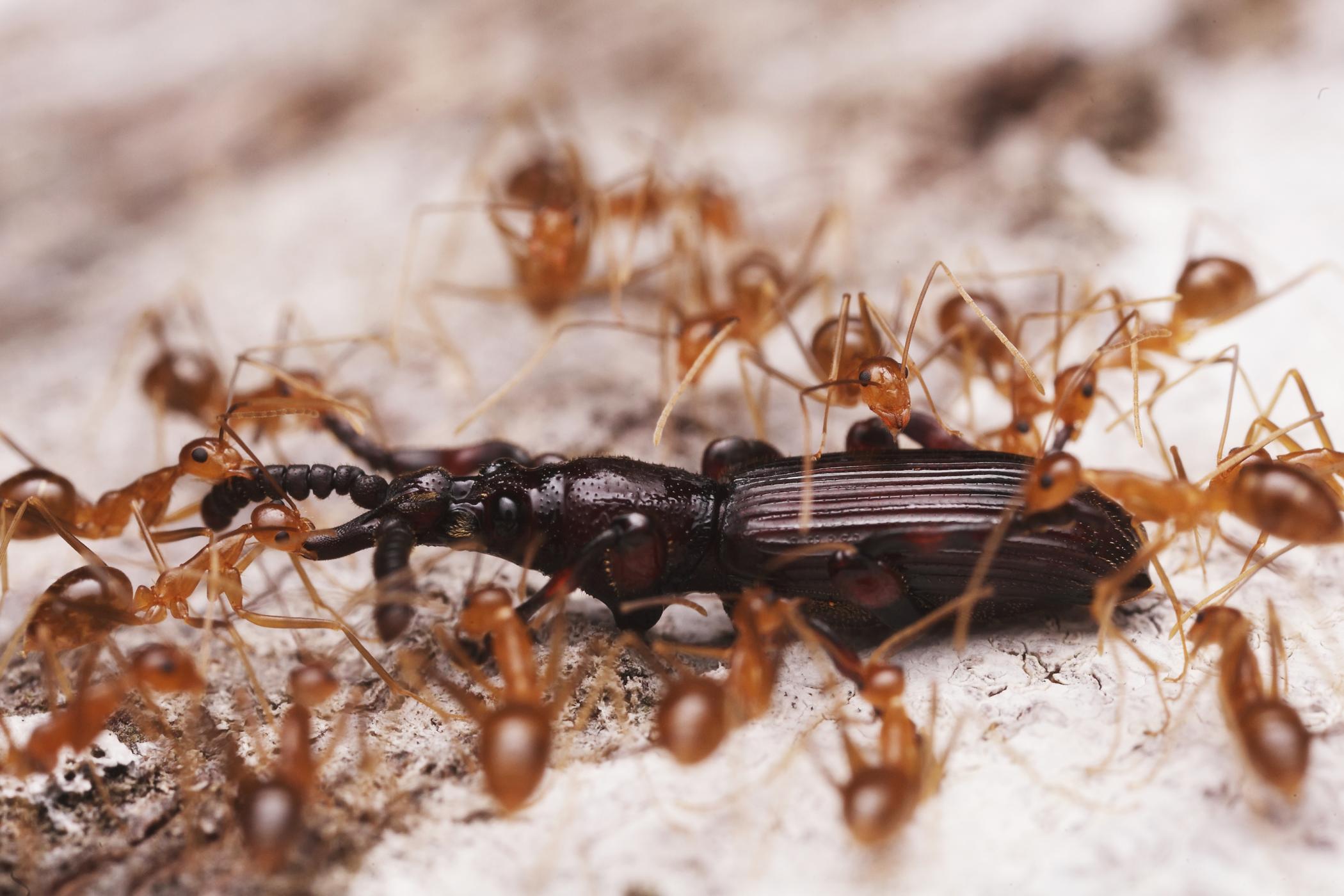 • Zachytil jsem mravence těsně před tím než napadl brouka čeledi Brentidae. Ten před pár vteřinami přistál na kmen.