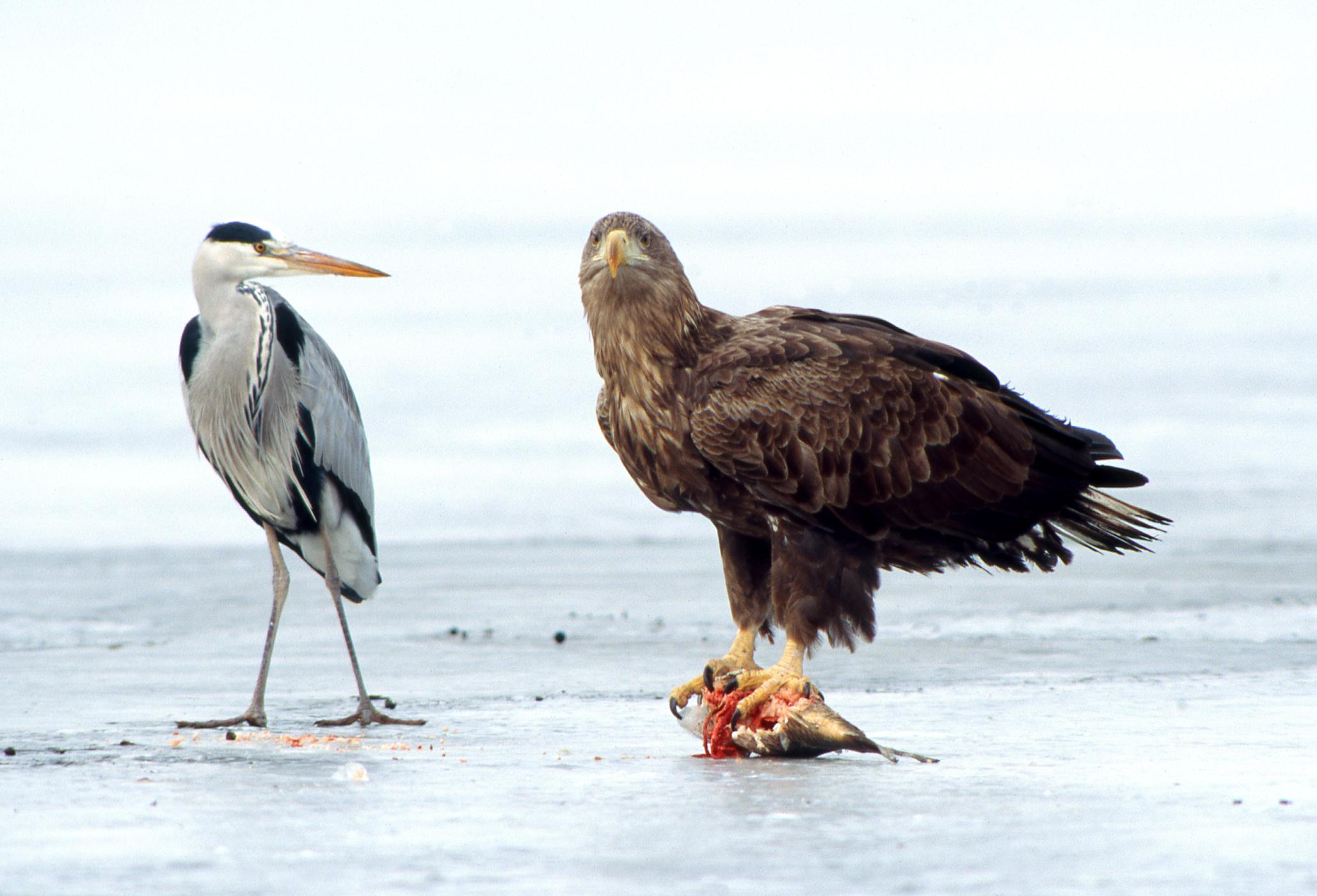 • Volavka popelavá dobře pozná, kdy jí od orla nehrozí nebezpečí. Pokud se orel právě krmí, odváží se přiblížit k němu na pár metrů a čeká na zbytky.