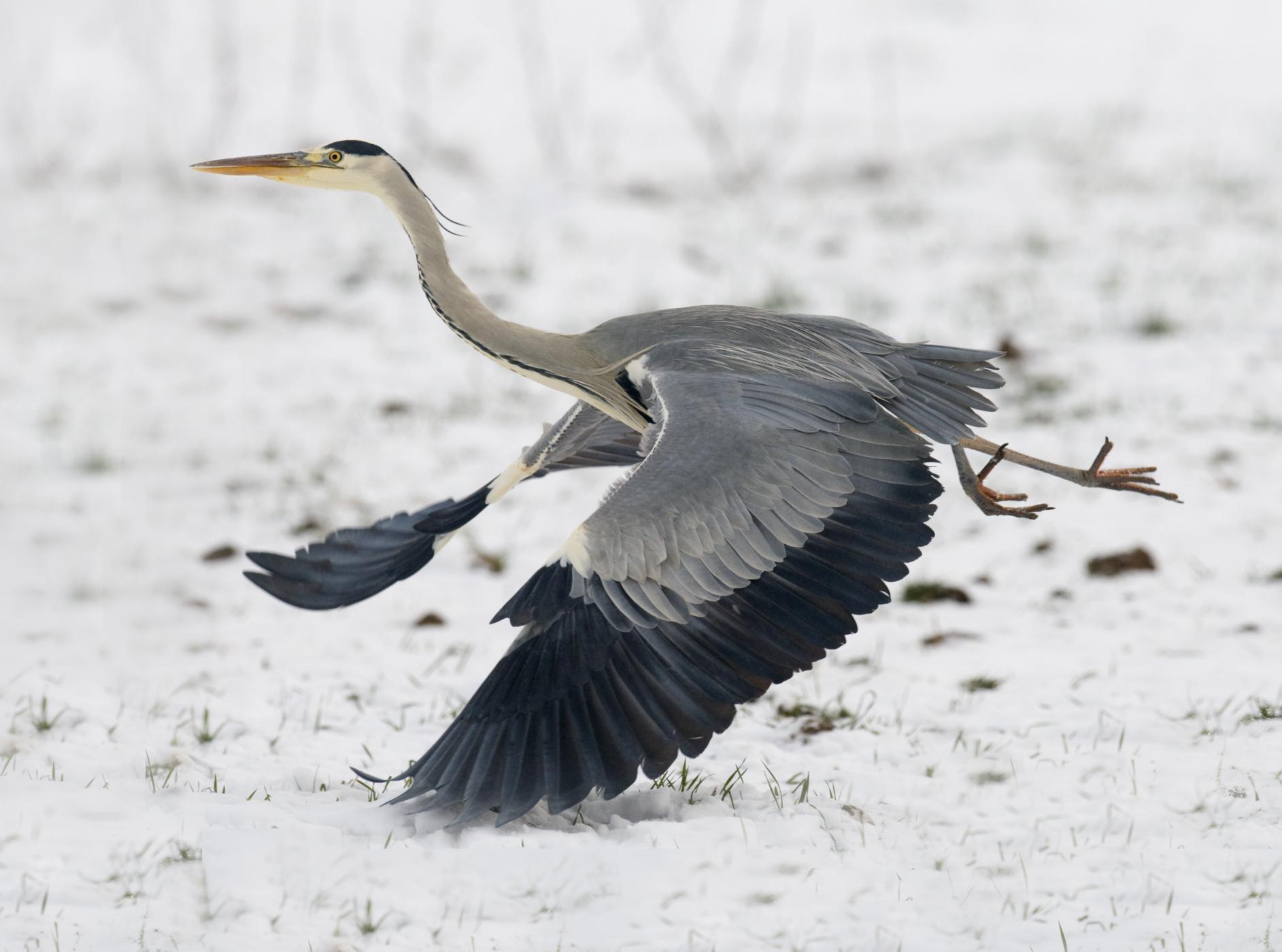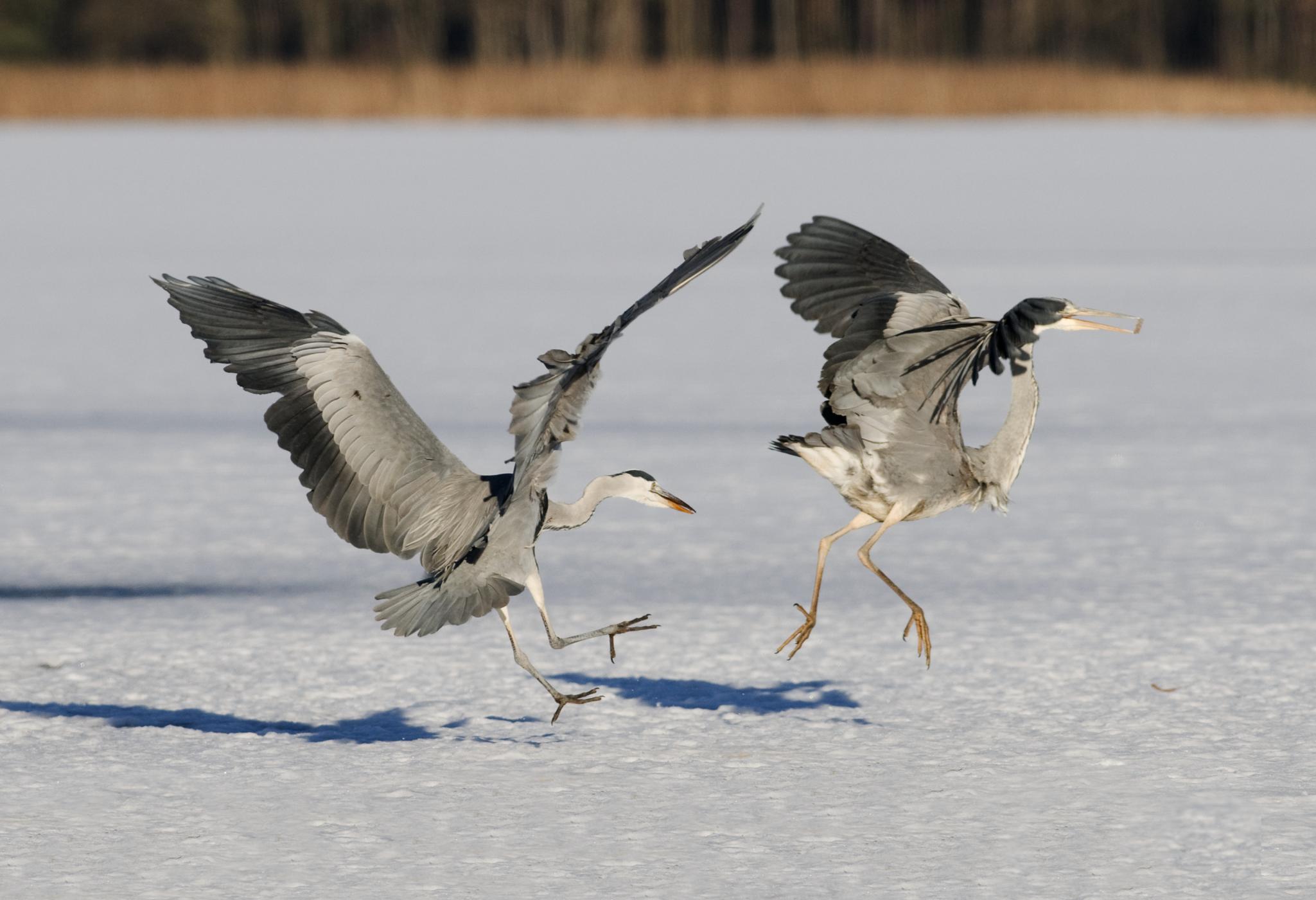 • Volavka popelavá hájí své potravní teritorium před konkurencí.