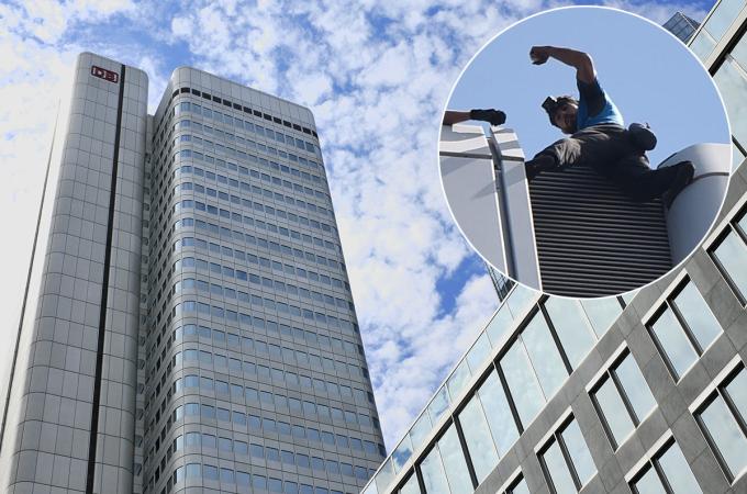 Lezec zdolal 166 metrů vysoký mrakodrap ve Frankfurtu: Na střeše čekala policie