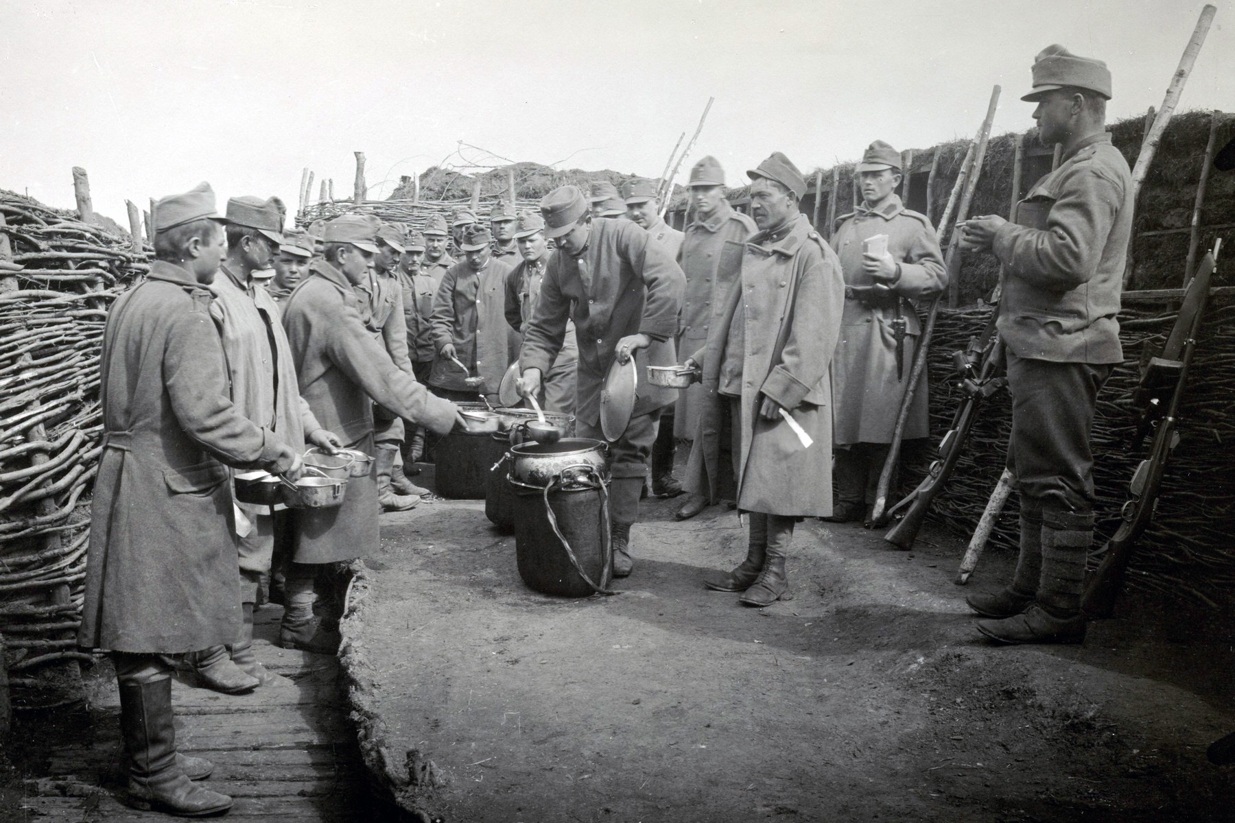 Vojáci při výdeji menáže. Množství stravy se často lišilo oproti množství, které měli muži dostávat podle předpisů.