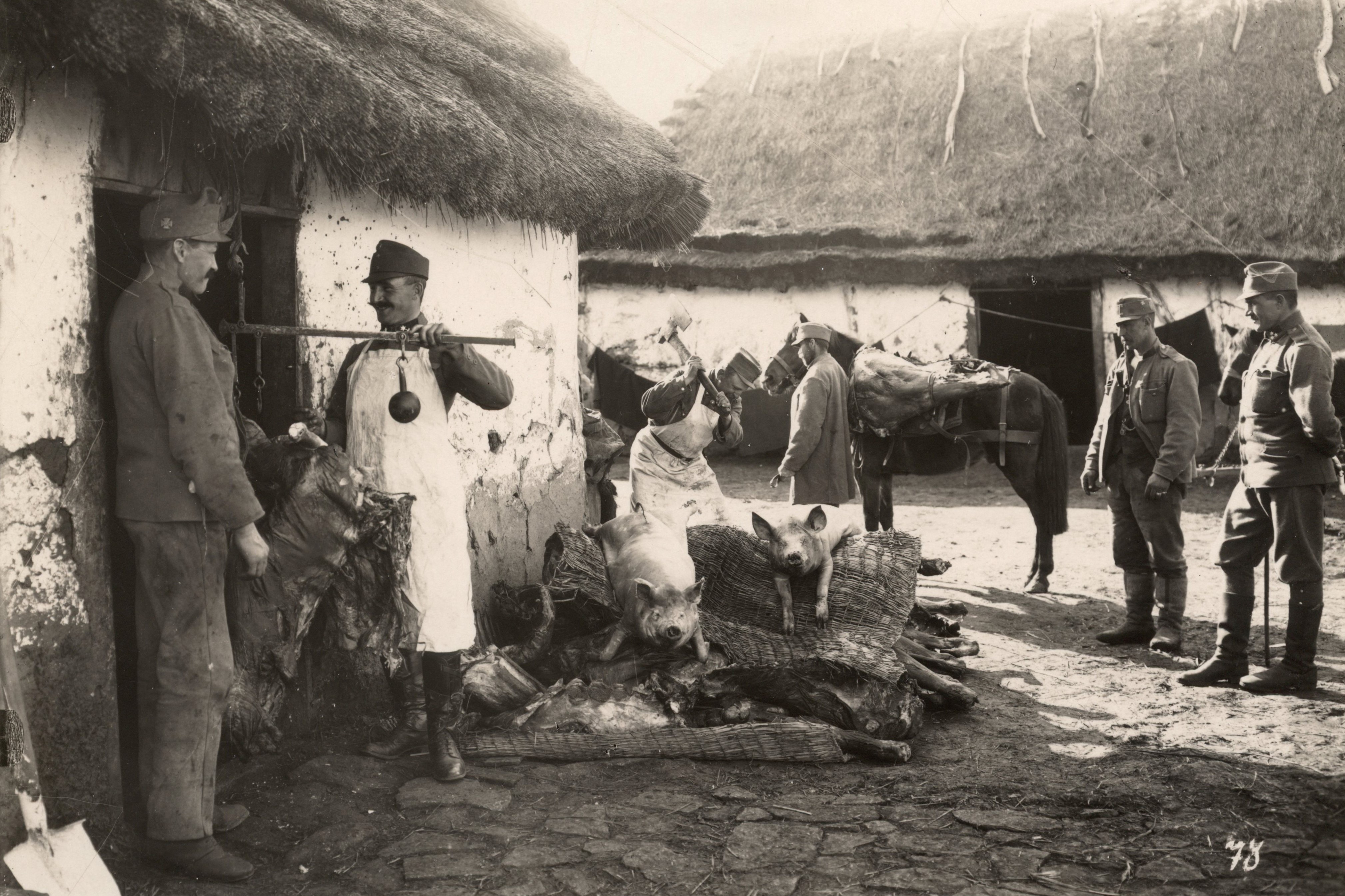 Řeznictví nedaleko italské fronty, kde se přímo porážela zvířata