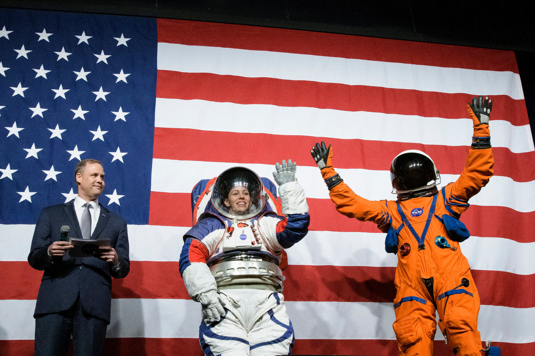Představení skafandrů pro mise programu Artemis v roce 2019.