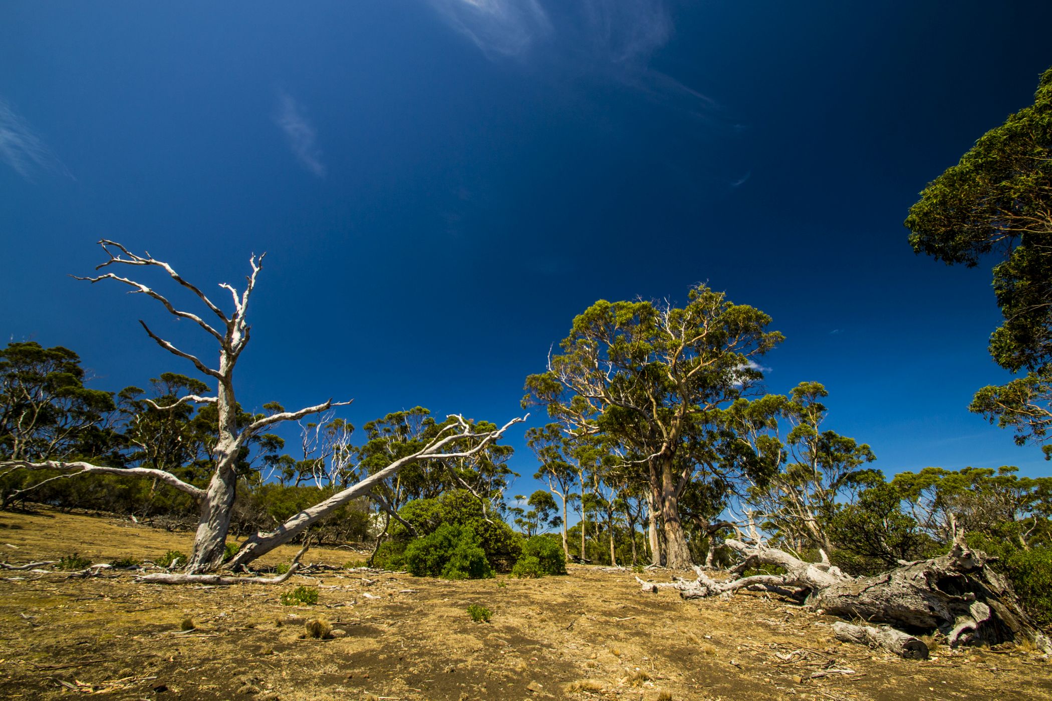 Eukalyptový les přecházející v otevřený prostor je místem, kde si vombati s oblibou hloubí nory.
