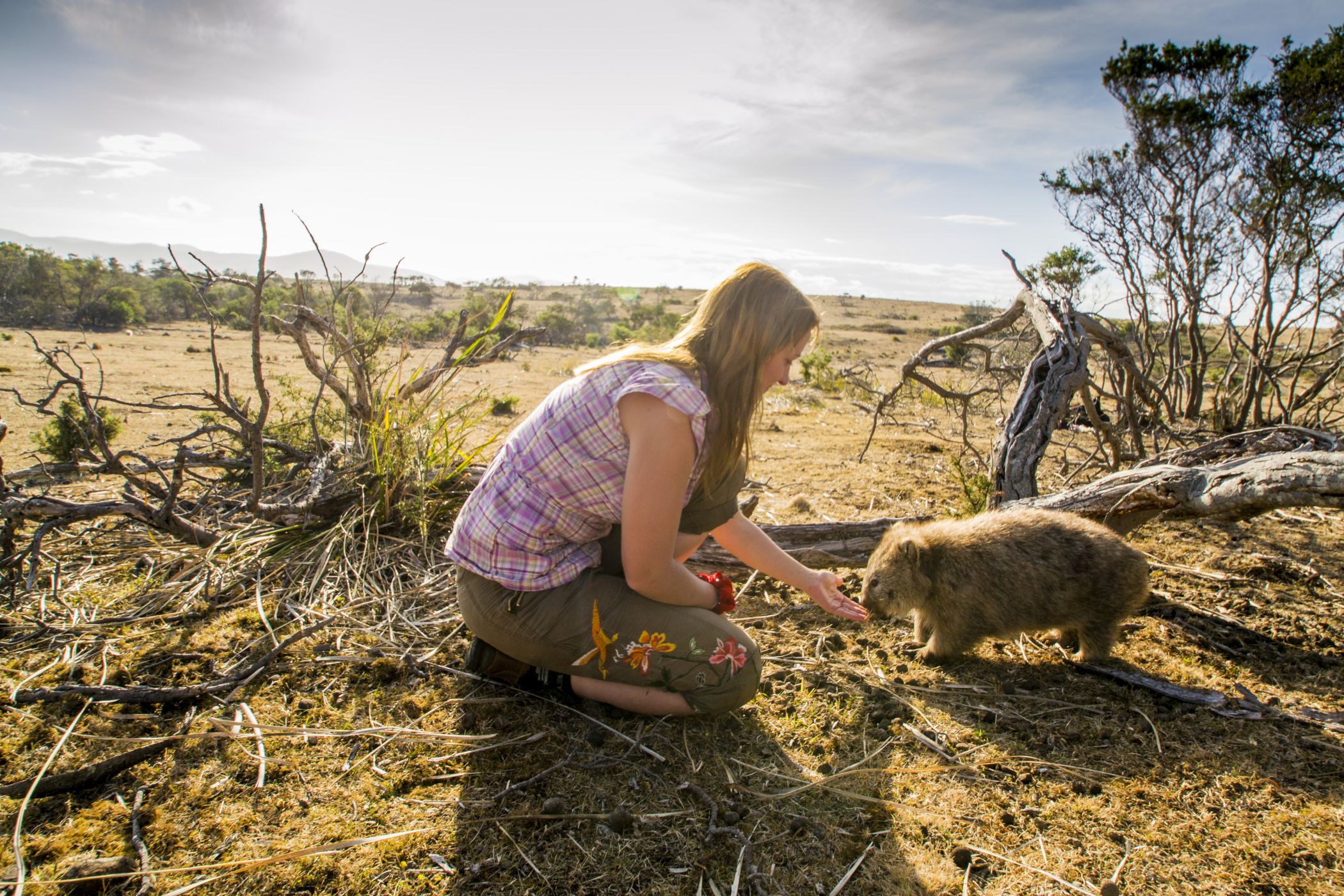 Pokud dáte vombatovi dostatek času na rozmyšlení a nic neuspěcháte, často přijde až k vám na dosah ruky a se zvědavostí si vás očichá.