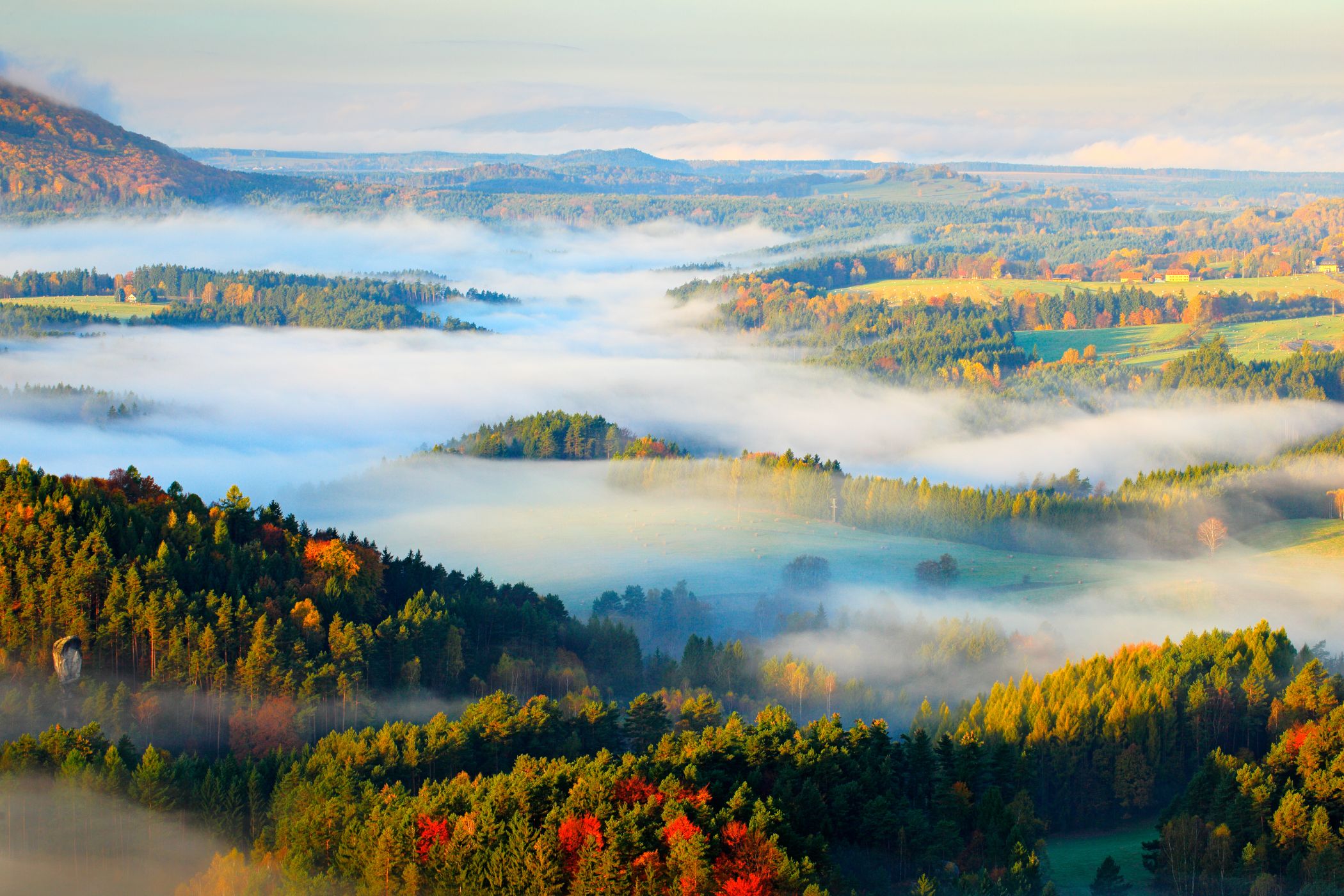 Krásu údolní mlhy ukazuje tento podzimní záběr z Českého Švýcarska.