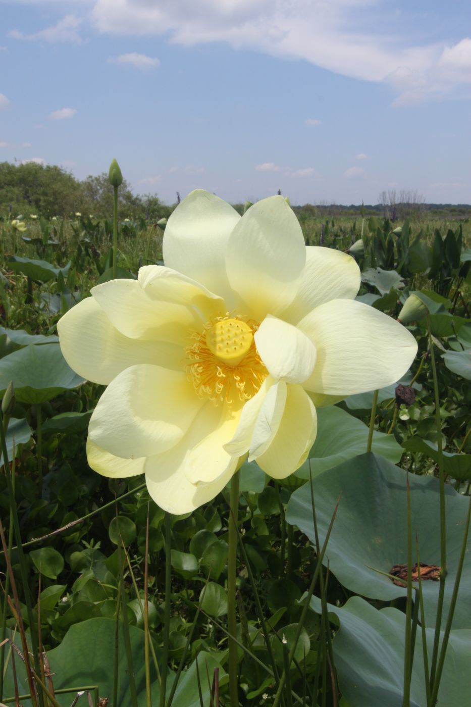 Spatřit žluté květy amerického druhu lotosu je velmi silným zážitkem. Velmi dobře dostupné jsou na Floridě, například u města Gainesville lze navštívit Paynes Prairie Preserve State Park se systémem povalových chodníčků skrz mokřady.