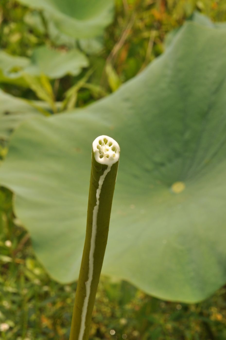 Pokud zlomíte nebo poškodíte řapík či list lotosu, začne vytékat mléčně bílý latex – i tím se lotosy odlišují od leknínů, které latex nevytvářejí.