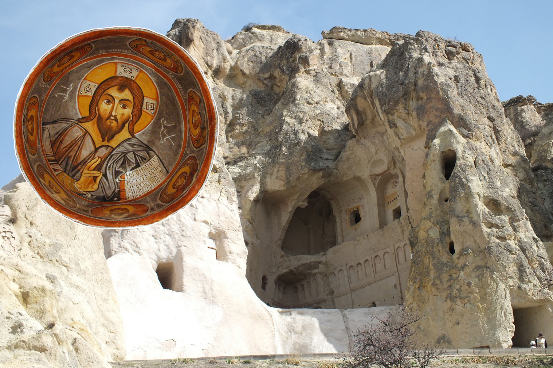 • Tmavý kostel tvoří součást muzea pod širým nebem v Göreme a tamní fresky patří mezi nejkrásnější v celé Kappadokii. (foto: Wikimedia Commons, Cobija, CC0 1.0 + Wikimedia Commons, Grizurgbg, CC BY-SA 3.0)