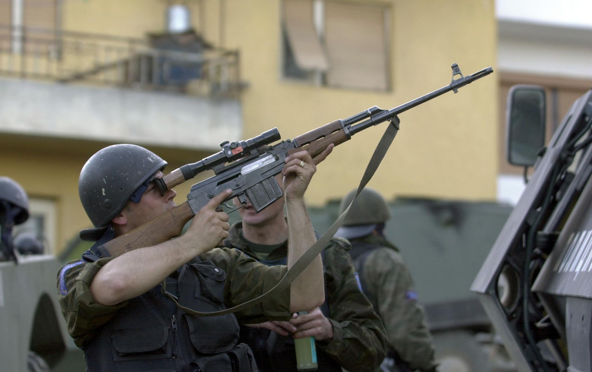 Obrazem: Makedonský policista proti albánským separatistům