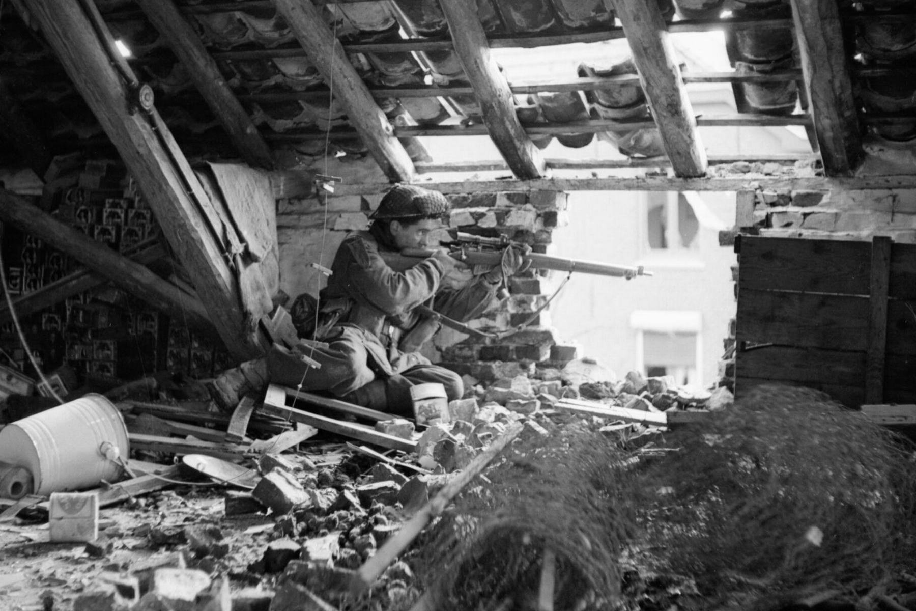 Americký odstřelovač v nizozemském Gennepu, 14. února 1945. (foto: Wikimedia Commons, Imperial War Museums, CC0)