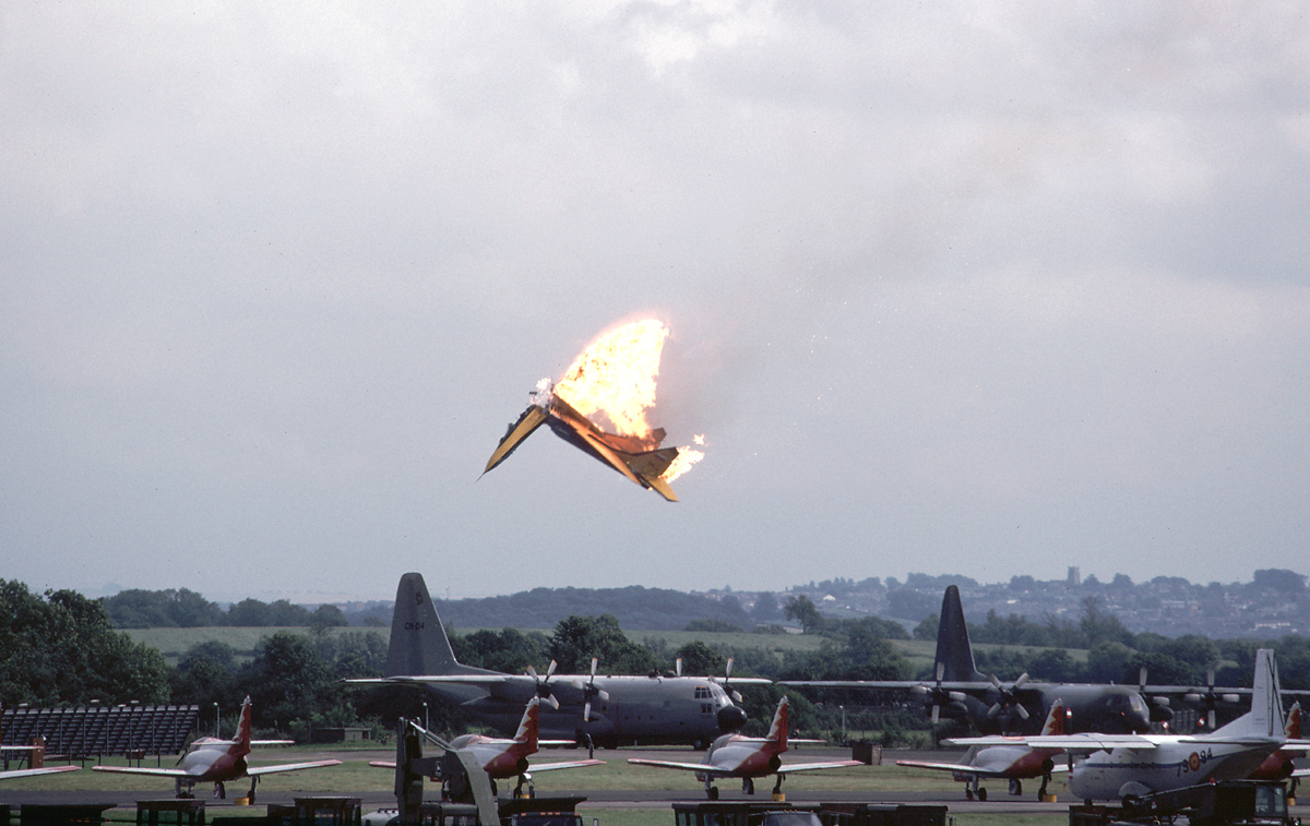 V britském Fairfordu došlo roku 1993 ke srážce stíhaček MiG-29, život oběma letcům zachránila sedadla K-36.