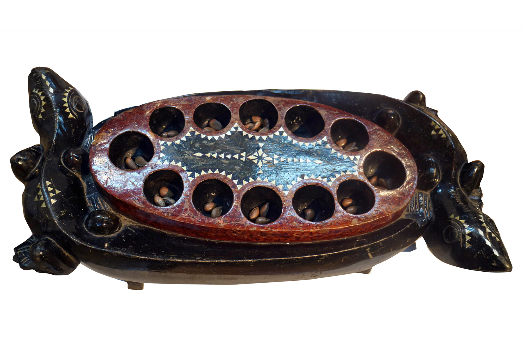 Mankalaové hry jsou známé také v Indonésii. O tom svědčí i tyto vzácné desky z Lomboku s motivy gekoních hlav.