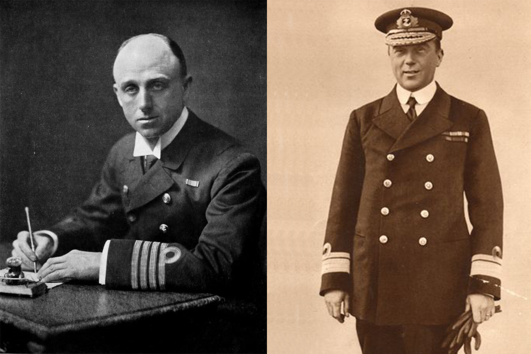 Kontradmirál Sir Robert Keith Arbuthnot i jeho kolega kontradmirál Horace Hood (vpravo) zahynuli na palubě svých lodích během bitvy u Jutska v květnu 1916.