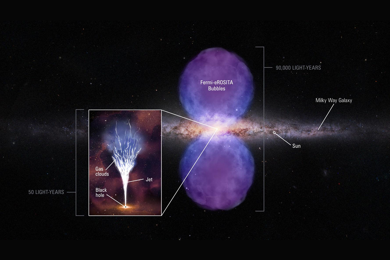 Vizualizace minivýtrysku supermasivní černé díry v centru Mléčné dráhy.