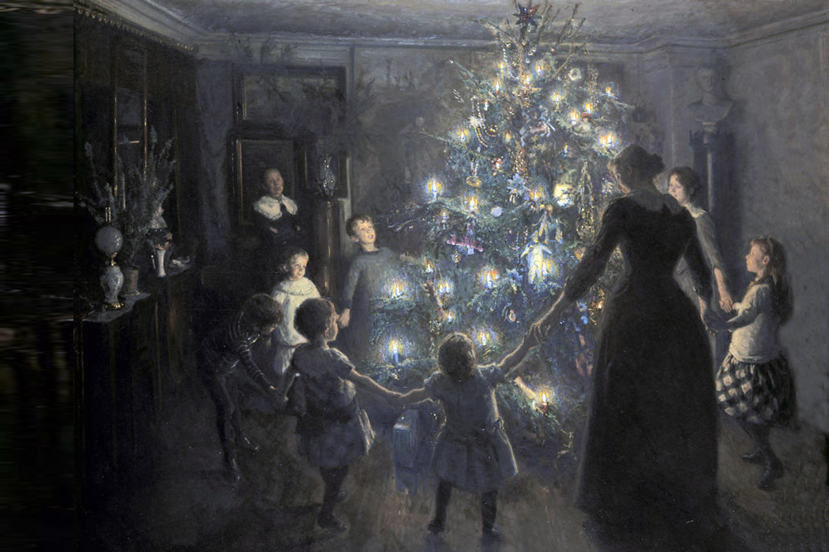 Zvyk zdobit vánoční stromeček se k nám dostal až počátkem 19. století z Německa. Kresba vánočního stromku dánského malíře Viggo Johansena z roku 1891.