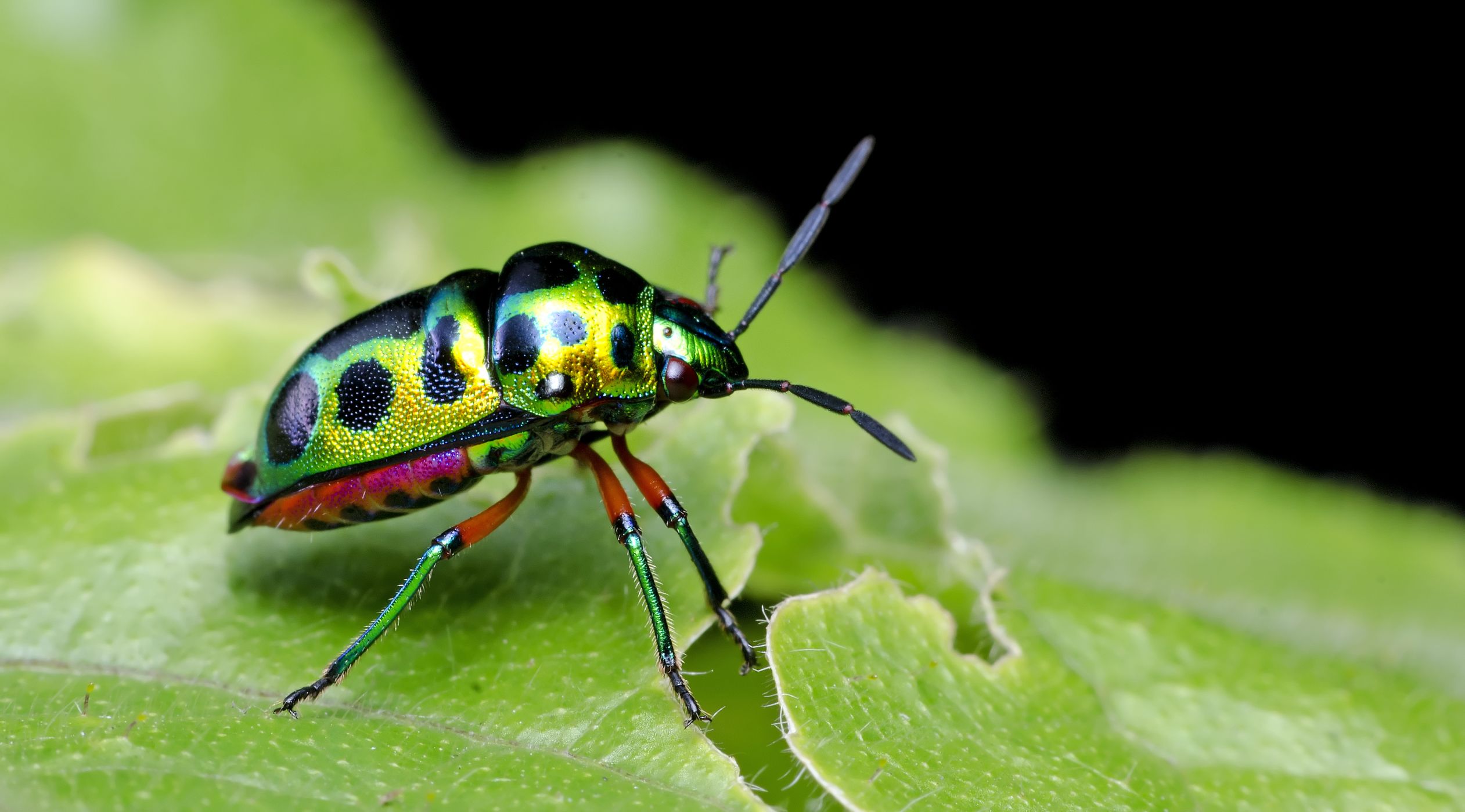 Takto v detailu se mohou měňavé metalické krovky zdát takřka nepřehlédnutelné. Ve skutečnosti ale zřejmě mají velmi dobré kamuflážní vlastnosti. Na snímku je druh Chrysocoris stollii z čeledi štítovkovitých (Scutelleridae), který je běžný v jihovýchodní Asii.