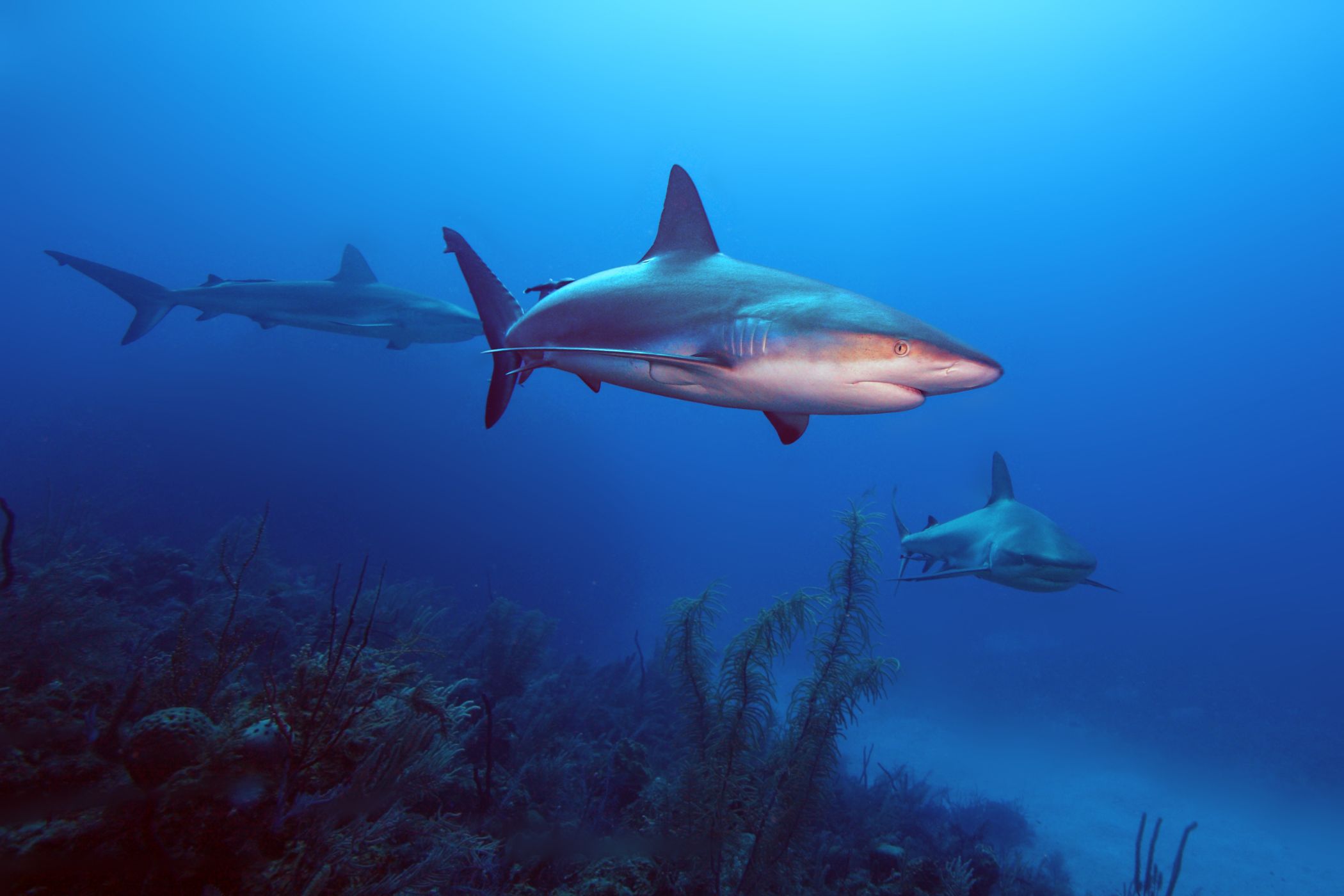 Pokud se potápěč „uklidil“ na písčité dno, žraloci poklidně proplavali v těsné blízkosti člověka, aniž by se o něj nějak výrazně zajímali.