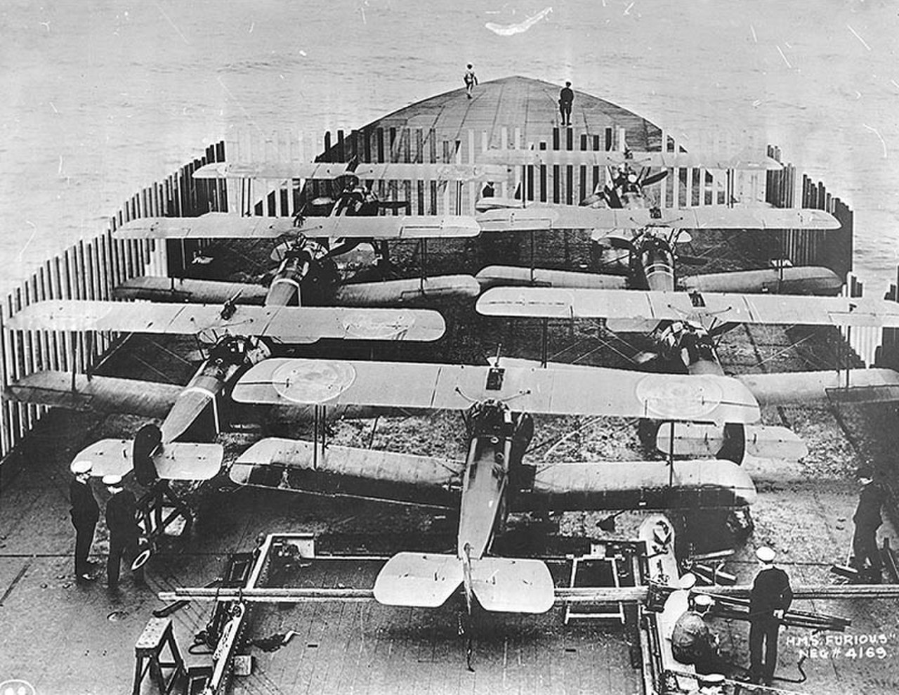 Stíhací letouny Sopwithy Camel připravené odstartovat k náletu na Tondern.