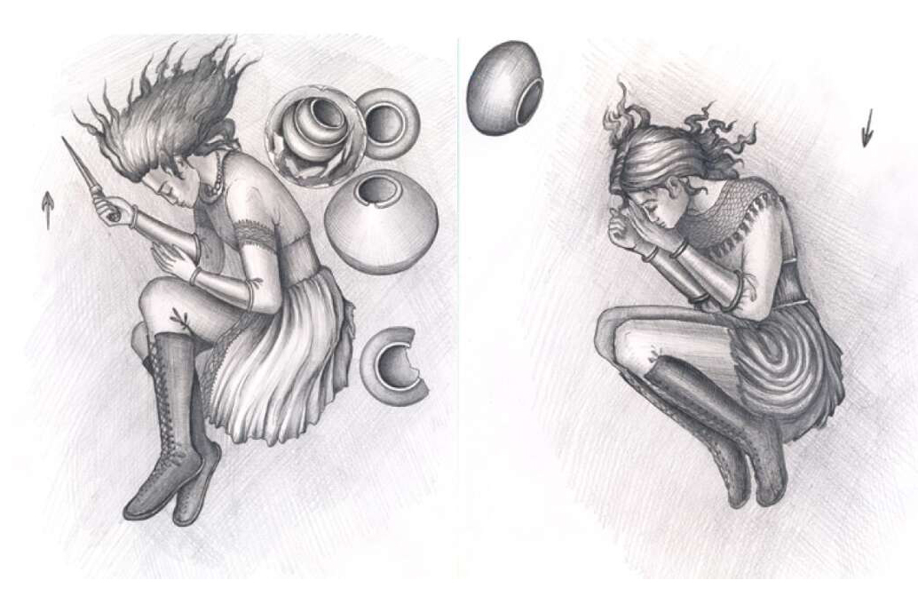 Dvojice pohřbených bojovnic, zralá žena (vlevo) a dívka (vpravo).