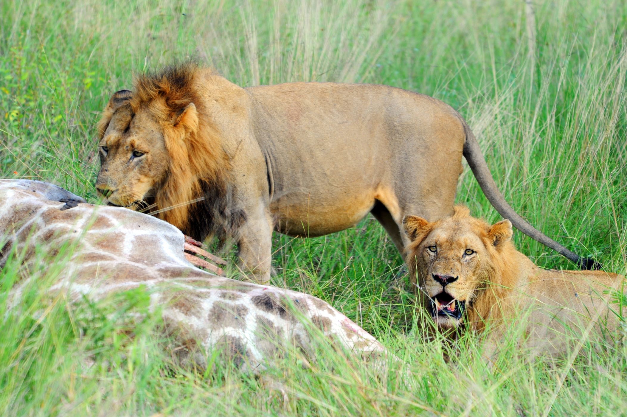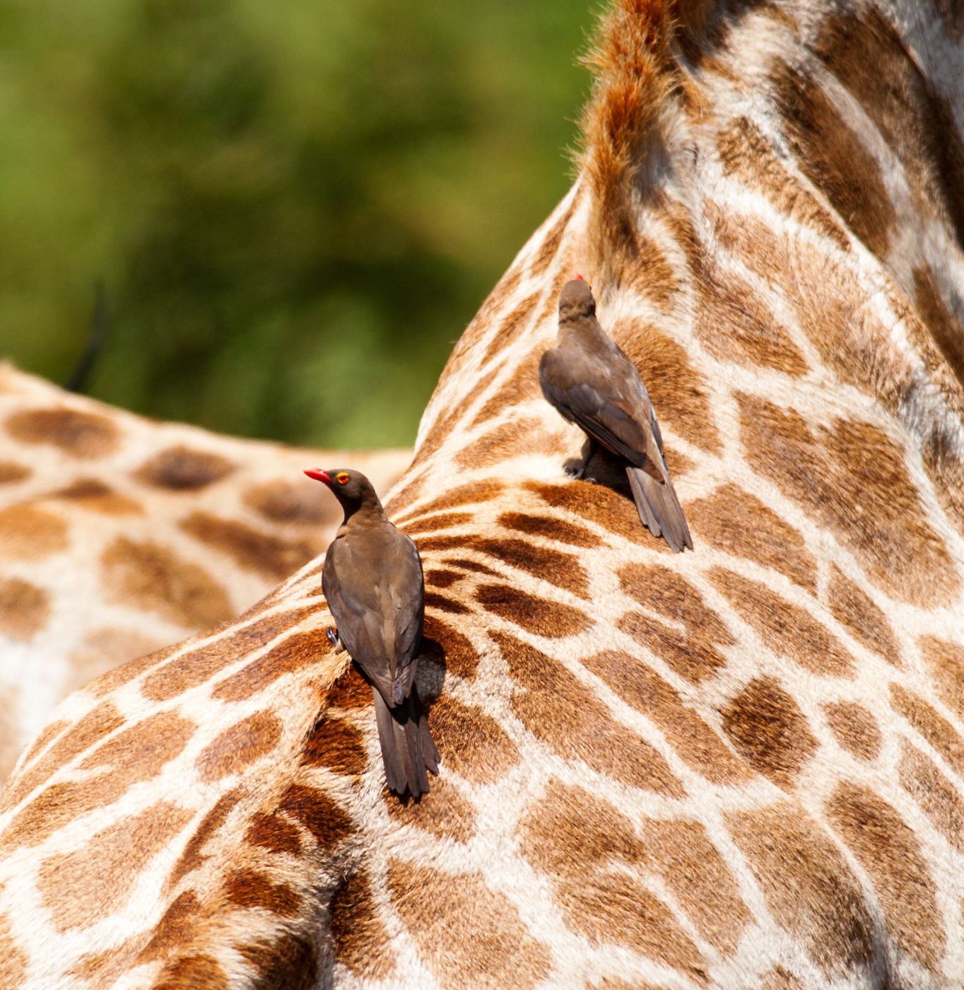 Na hřbetech žiraf (a dalších velkých kopytníků) můžete často vidět klubáky červenozobé (Buphagus erythrorhynchus) a klubáky žlutozobé (Buphagus africanus). Dříve byli zoologové přesvědčeni, že tito ptáci vybírají z pokožky žiraf ektoparazity a jde tedy o vzájemně výhodné soužití (mutualismus). Poslední výzkumy ale naznačují, že o prospěšnosti klubáků pro velké kopytníky lze pochybovat. Spíše se jedná o příklad úspěšné adaptace, která se pohybuje na hranici parazitismu.