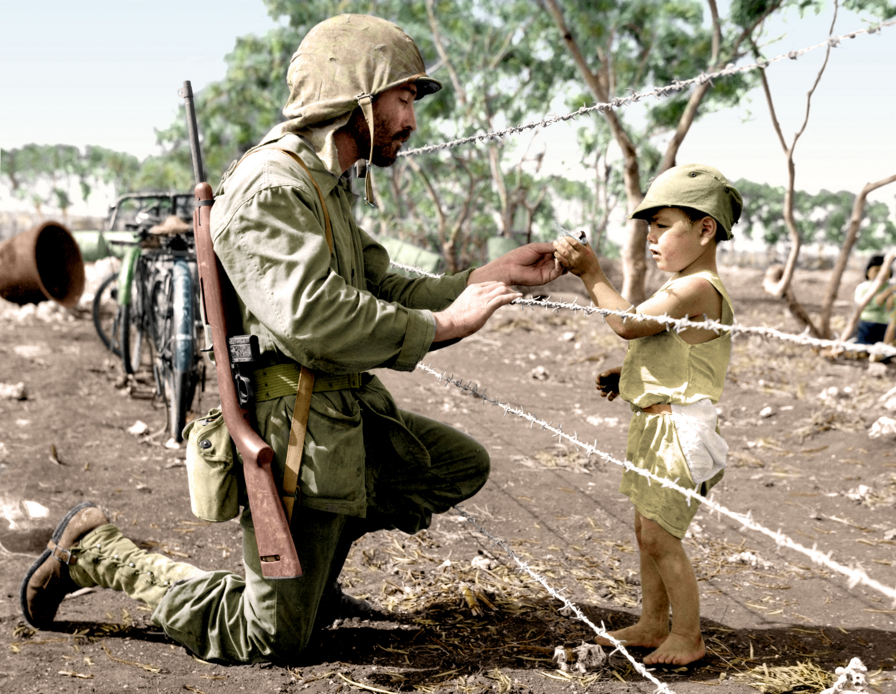 a japonského chlapce zachycuje lidskost uprostřed krvavého konfliktu.
