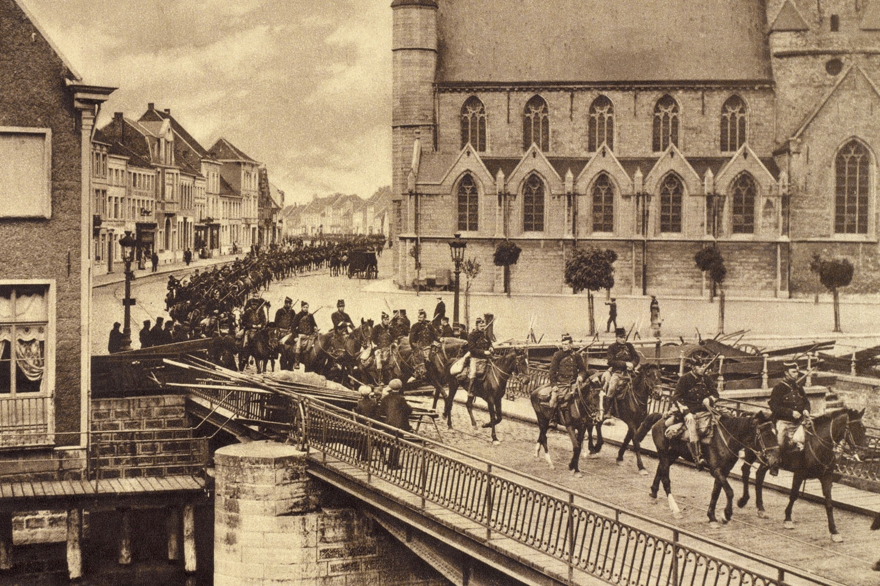 Symbolický snímek – belgičtí kavaleristé ustupují před postupující německou armádou.