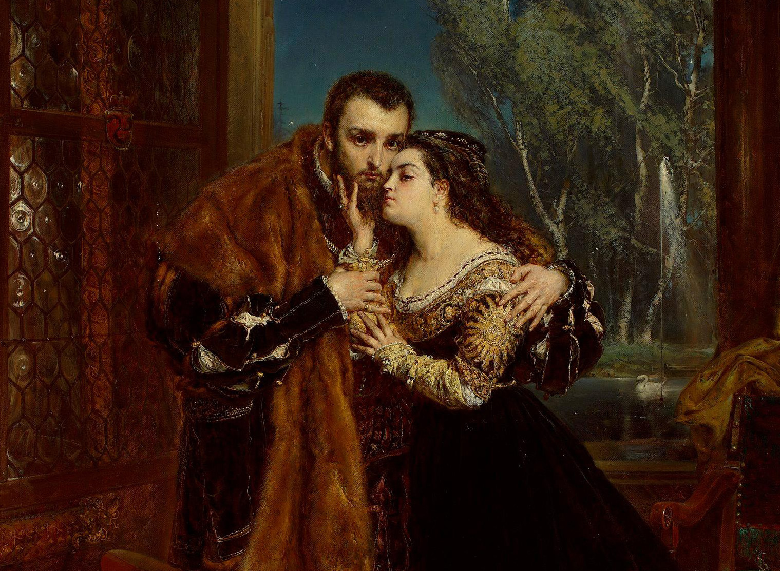 Zikmund II. August a Barbora Radziwiłłovna na dvoře Radziwiłłů ve Vilniusu. Obraz polského malíře Jana Matejka z roku 1867.