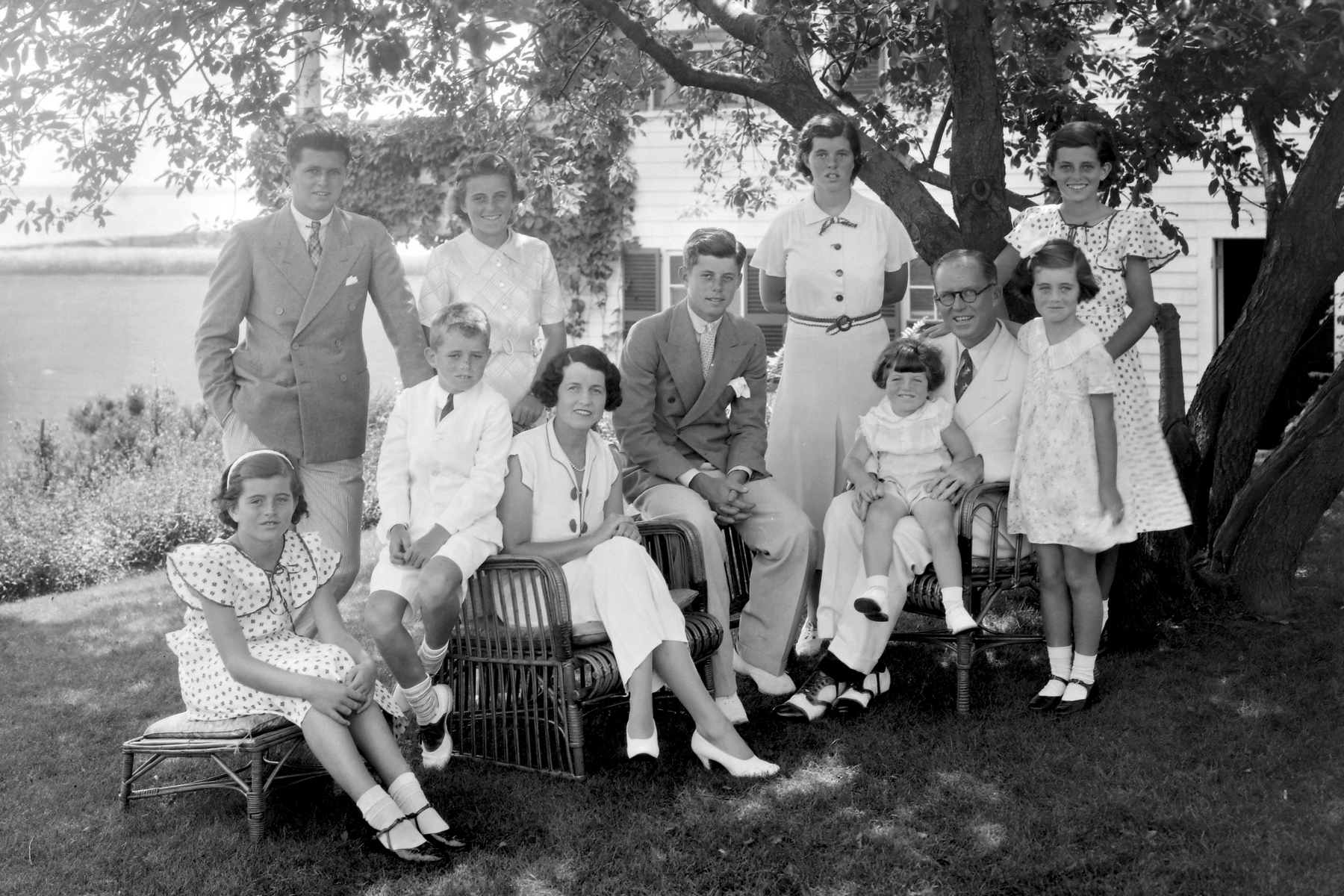 Kennedyovi na Cape Code, asi 1935. Johnův otec Joseph Patrick Kennedy se prosadil jako podnikatel i politik. Také synové John (uprostřed), Robert (nalevo od matky) a Edward (s otcem) měli velké ambice.